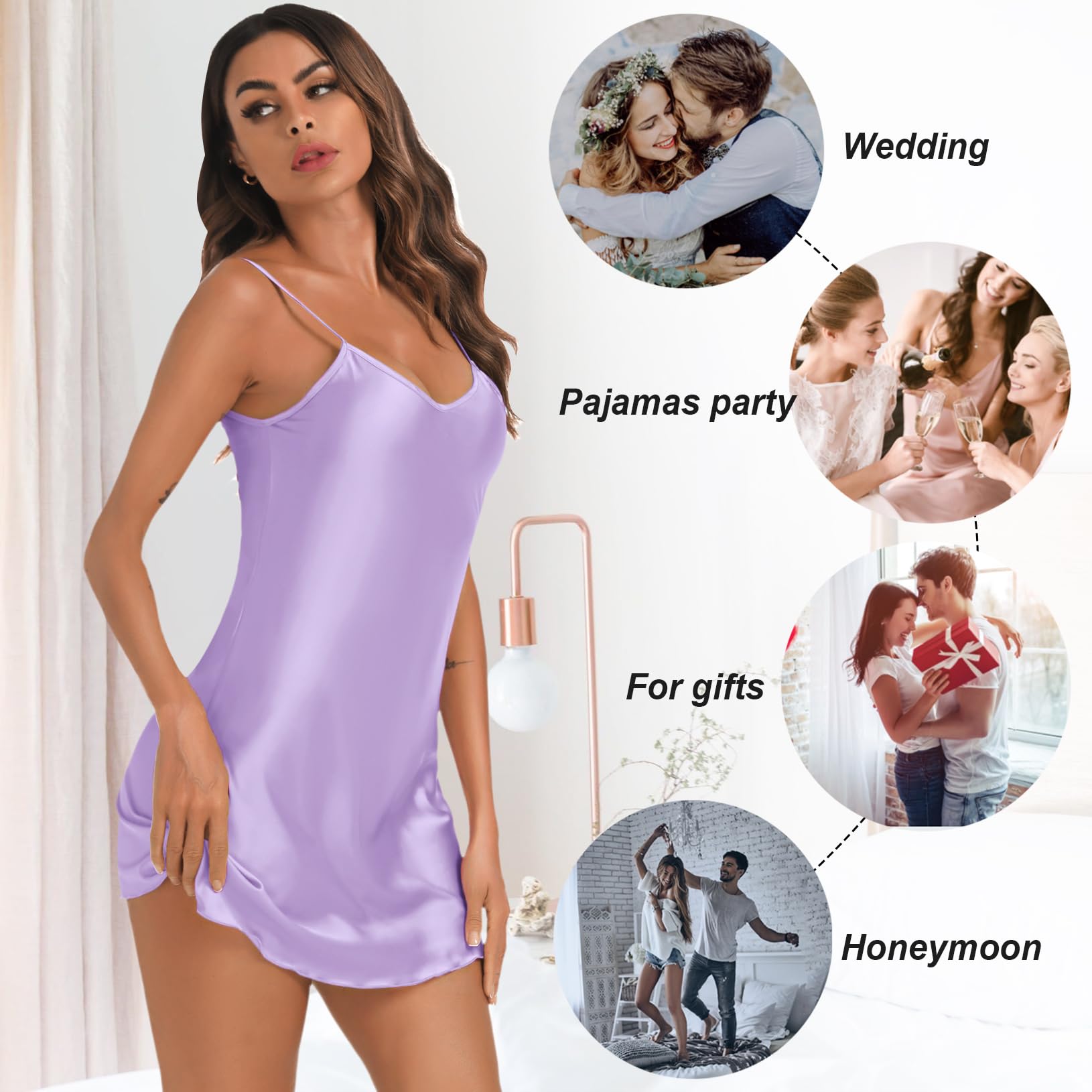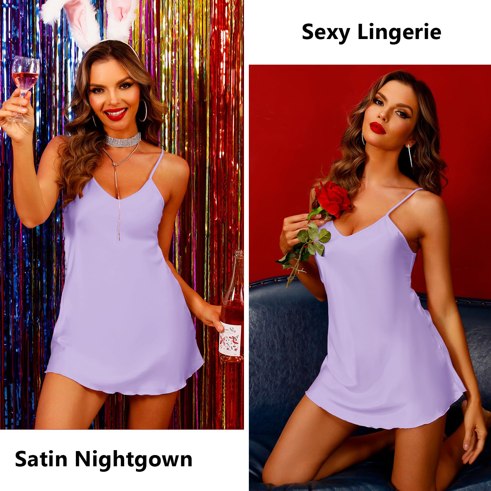 The satin nightgown /silk slip dress/sexy lingerie/nighty for women is buttery smooth with a feather-light drape and flow soft and snug to against your skin, perfect for sleepwear, nightwear, loungewear, honeymoon, casual wear, pajama party, and Halloween costume