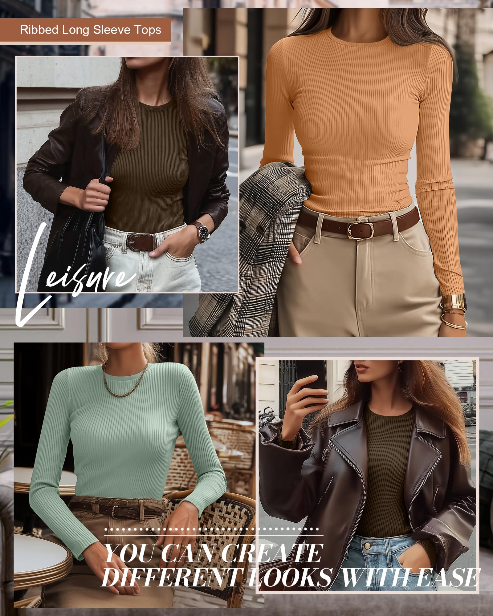 Flattering Look: the women's crew neck shirts feature long sleeve, slim fit, stretch, ribbed knit basic simple design, which highlight women's beautiful figure; Whether you prefer a casual look or a more formal attire, there's something for everyone