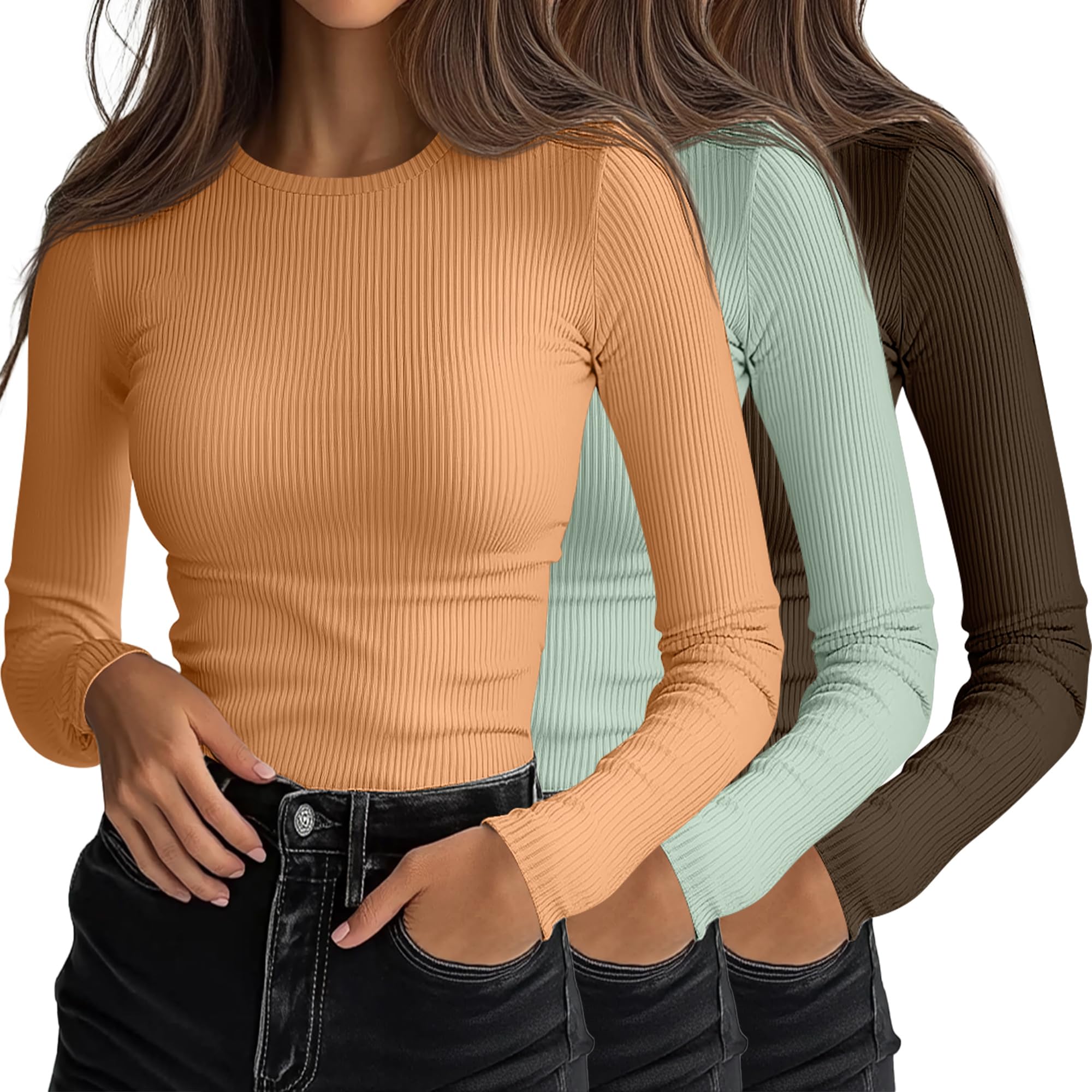 Package Included: you will get 3 pack women's ribbed knit shirts, that are suitable to wear on different occasions, such as shopping, dates, travel, outside sports, casual workout, club, party, school and other activities; You can create different looks with ease