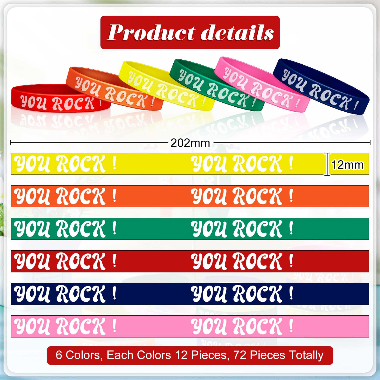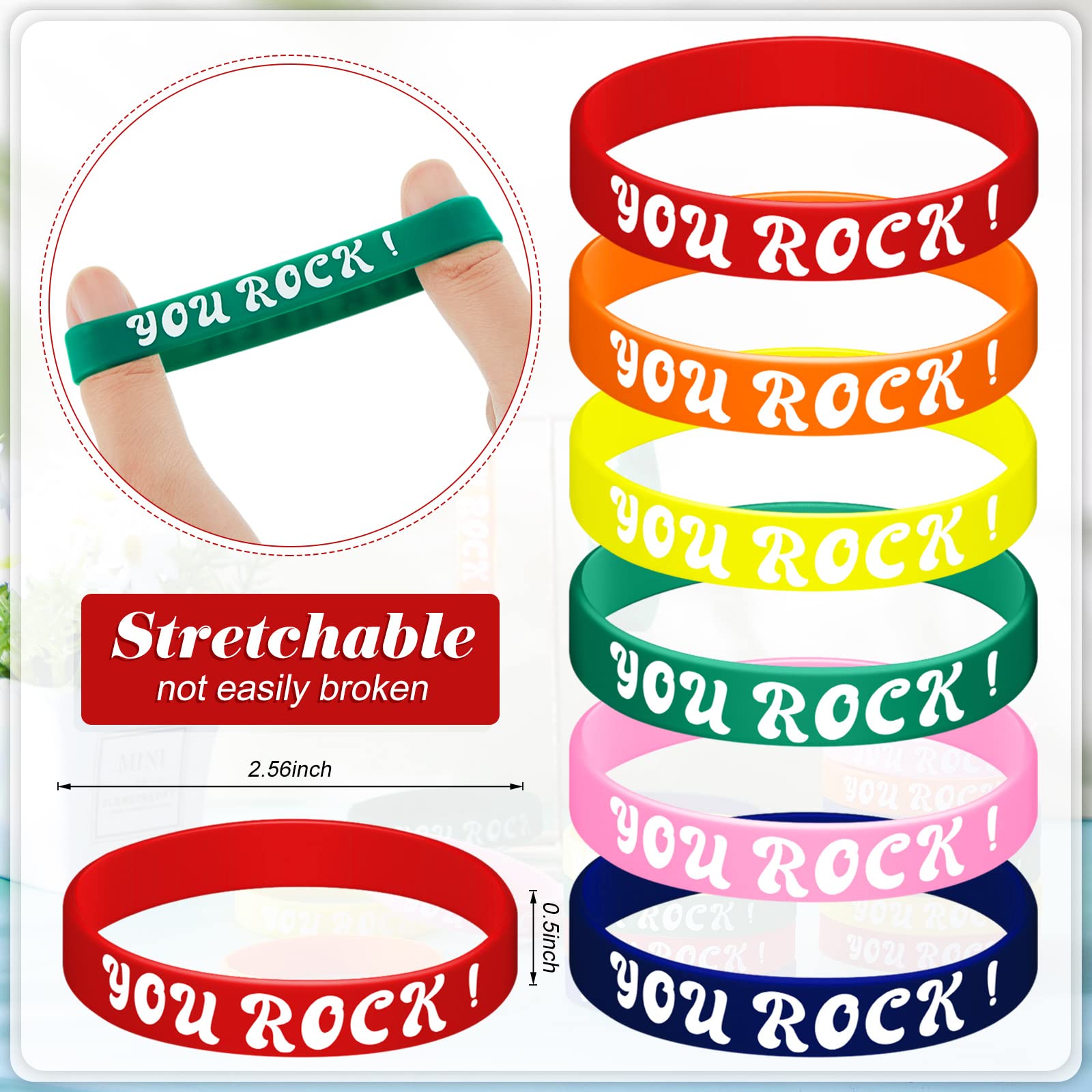 Standard Size: this [You Rock] bracelet set contains 72 bracelets in 6 colors to meet your large quantity needs, and the silicone award wristbands measure 8 x 0.5 inches and are small and lightweight; So when you don't want to wear them, you can put them in your pocket or bag without taking up too much space