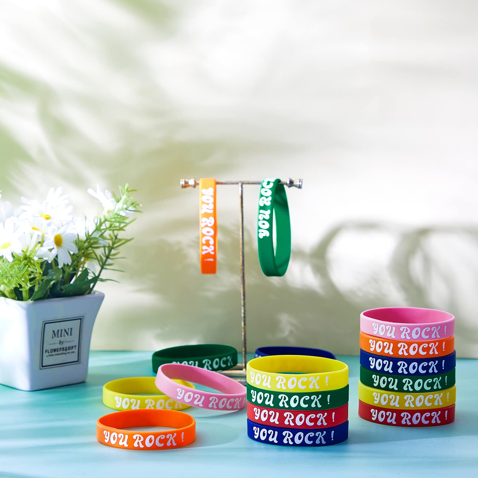 Exquisite Design: the rubber wristband is multicolor printed with white [YOU ROCK], simple and beautiful; The positive message on the wristband can give encouragement and warmth to children and employees, bringing them a pleasant mood