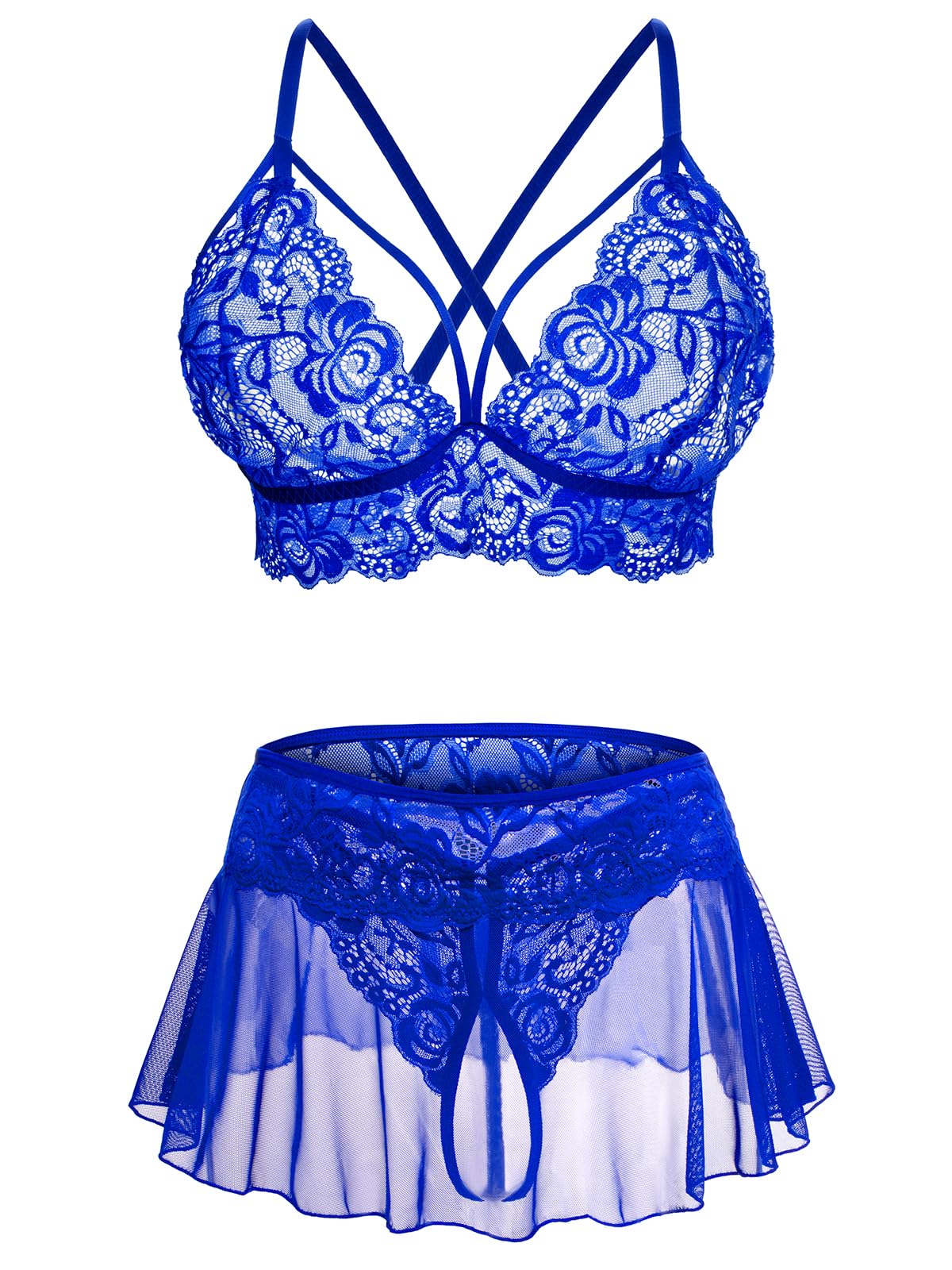 🎁Features: Women's lingerie set features hollow lace cups, adjustable straps, sexy lace mini skirt and panties to add vitality to your love.