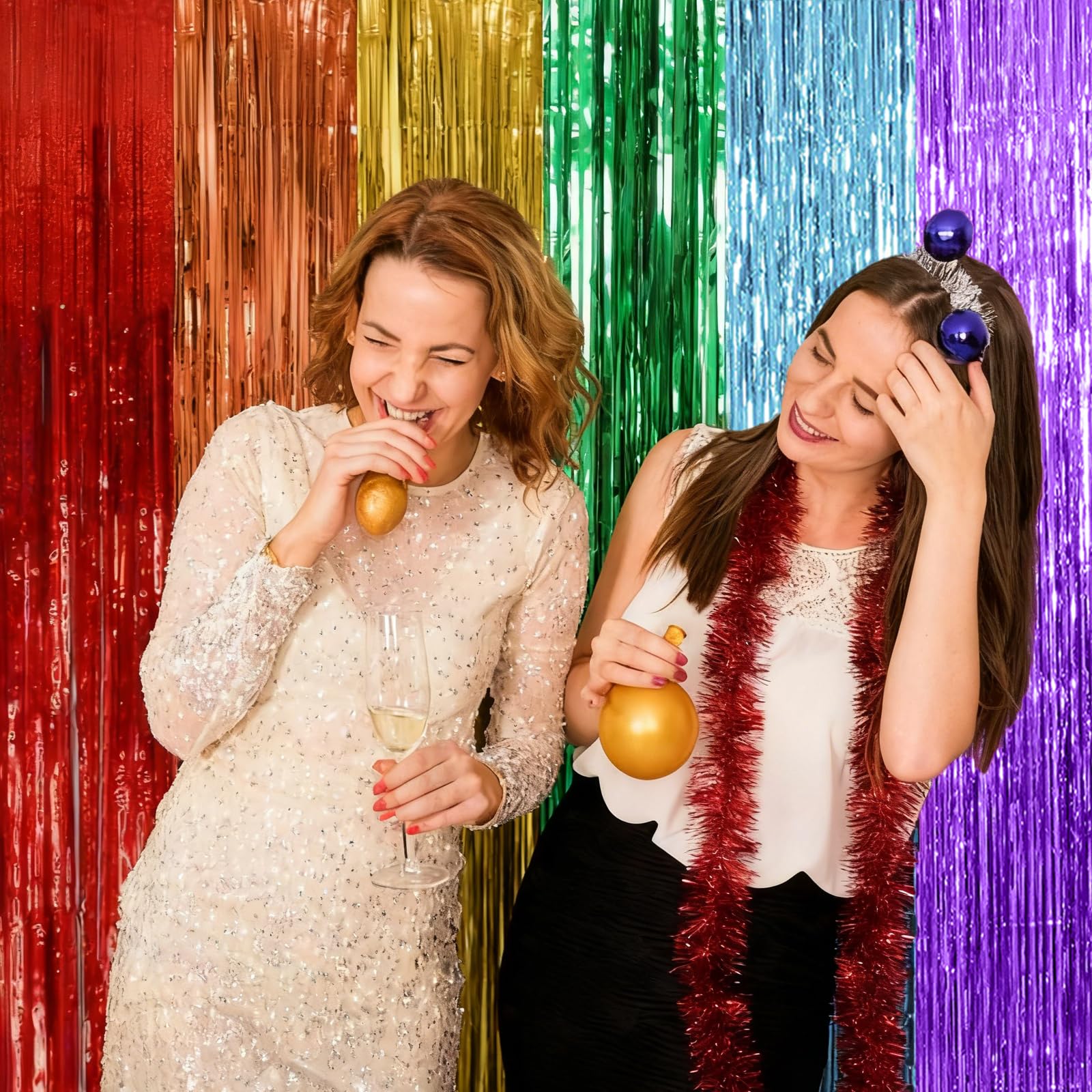 Material: The metallic tinsel backdrop is made of tinsel with shiny surface, durable material can be reused. Good for adding sparkle as decorations for parties.