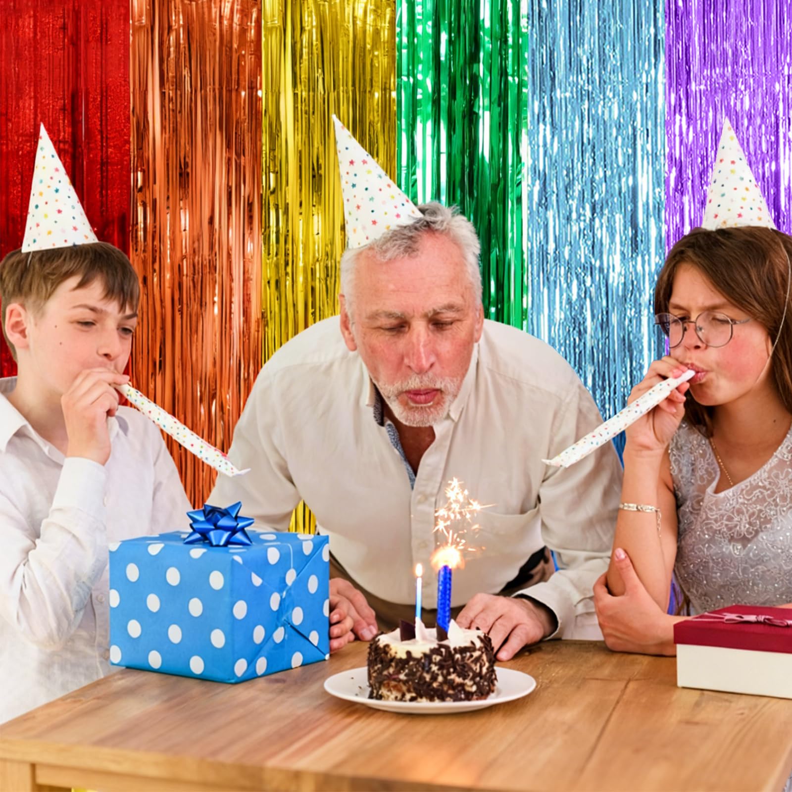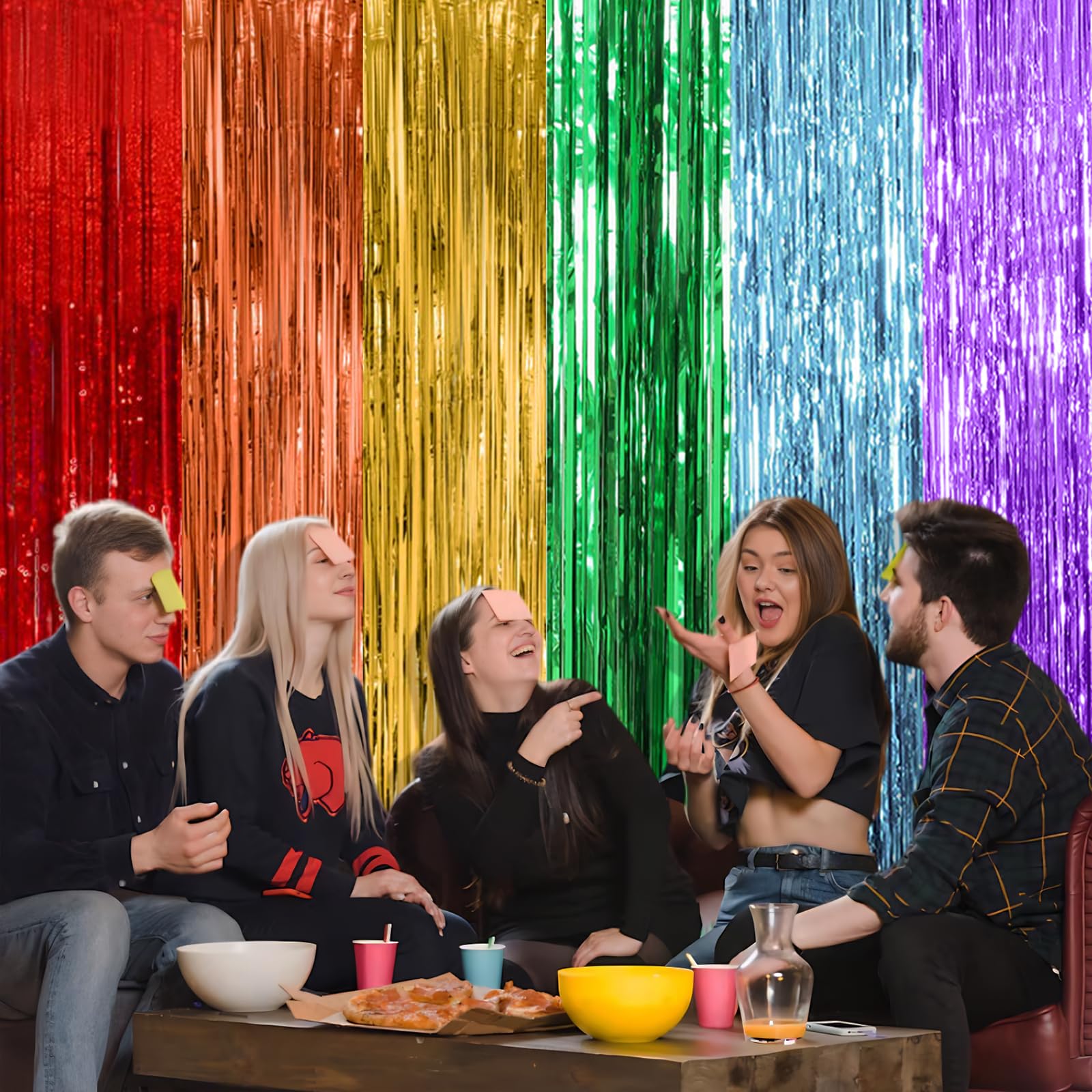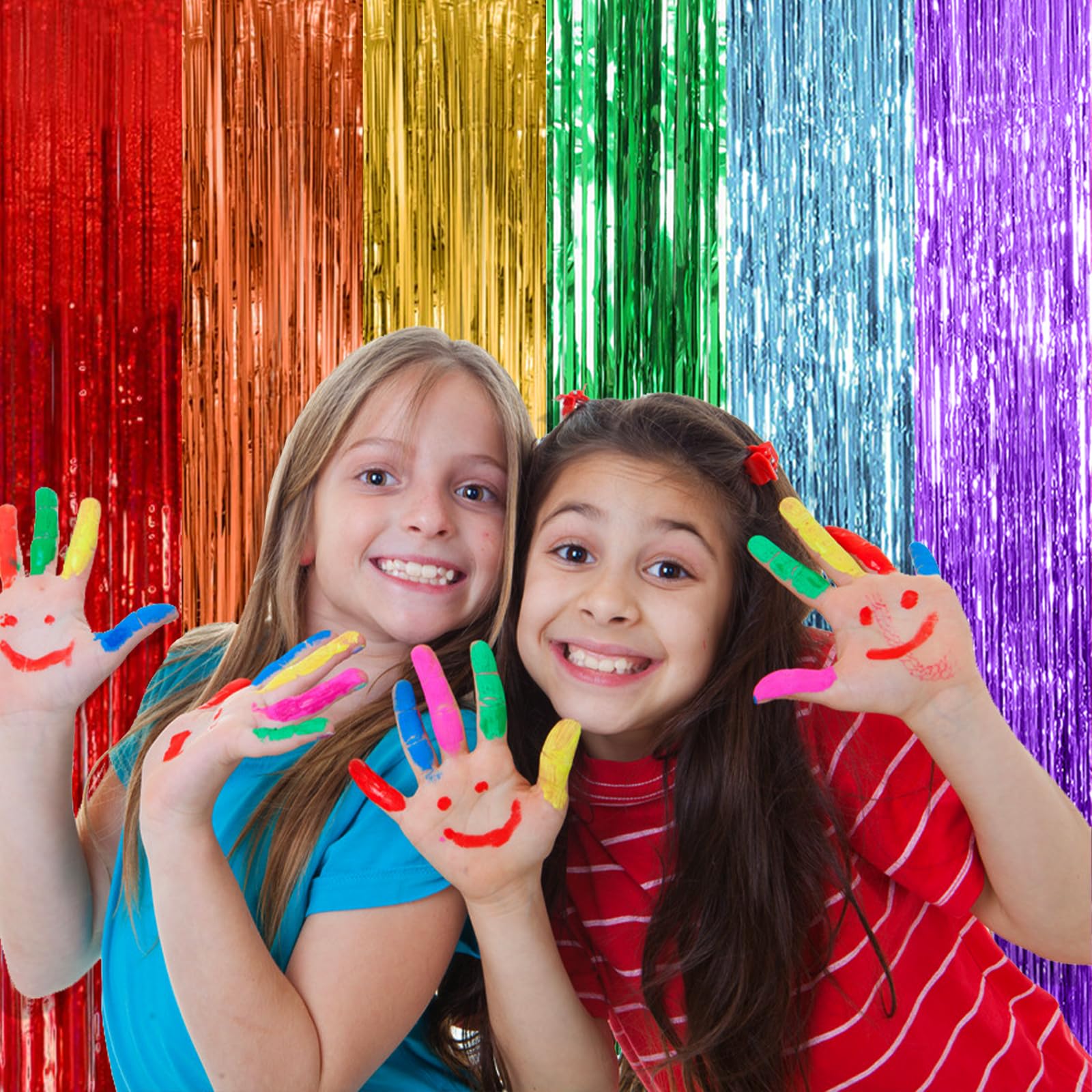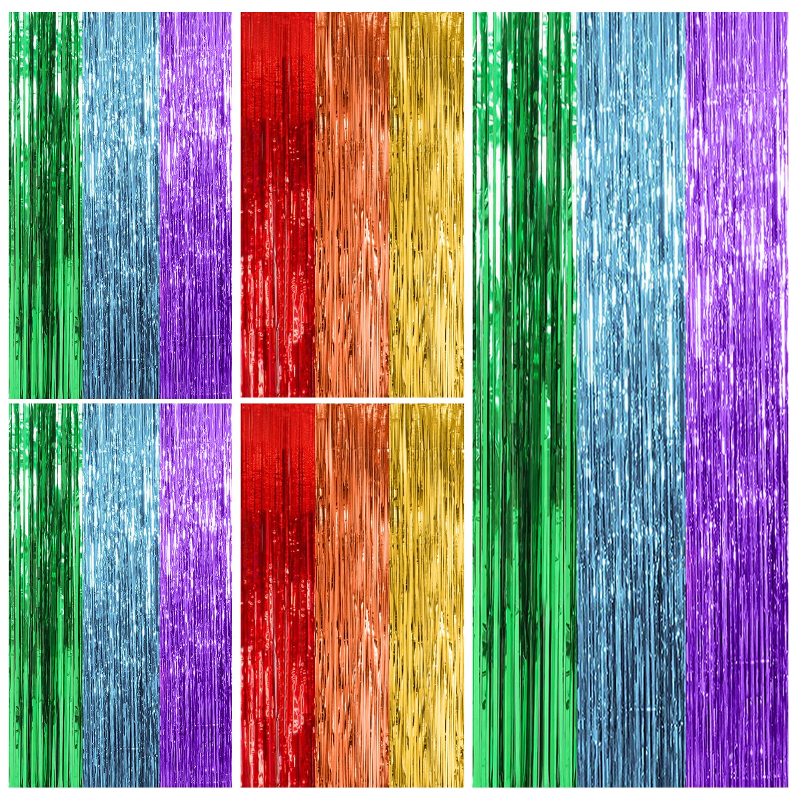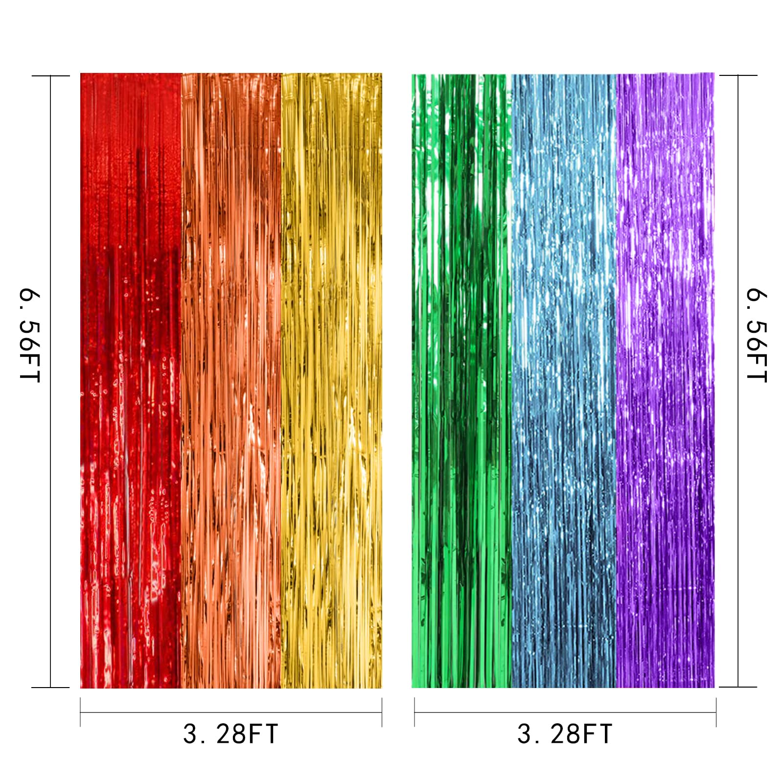 Rainbow Party Streamers Backdrop: 5Packs/Set, enough quantity for your party decoration. Each pack foil curtains size is 3.28 ft x 6.56 ft, enough length for decorate your party. Perfect accessories for decorating doors and walls.