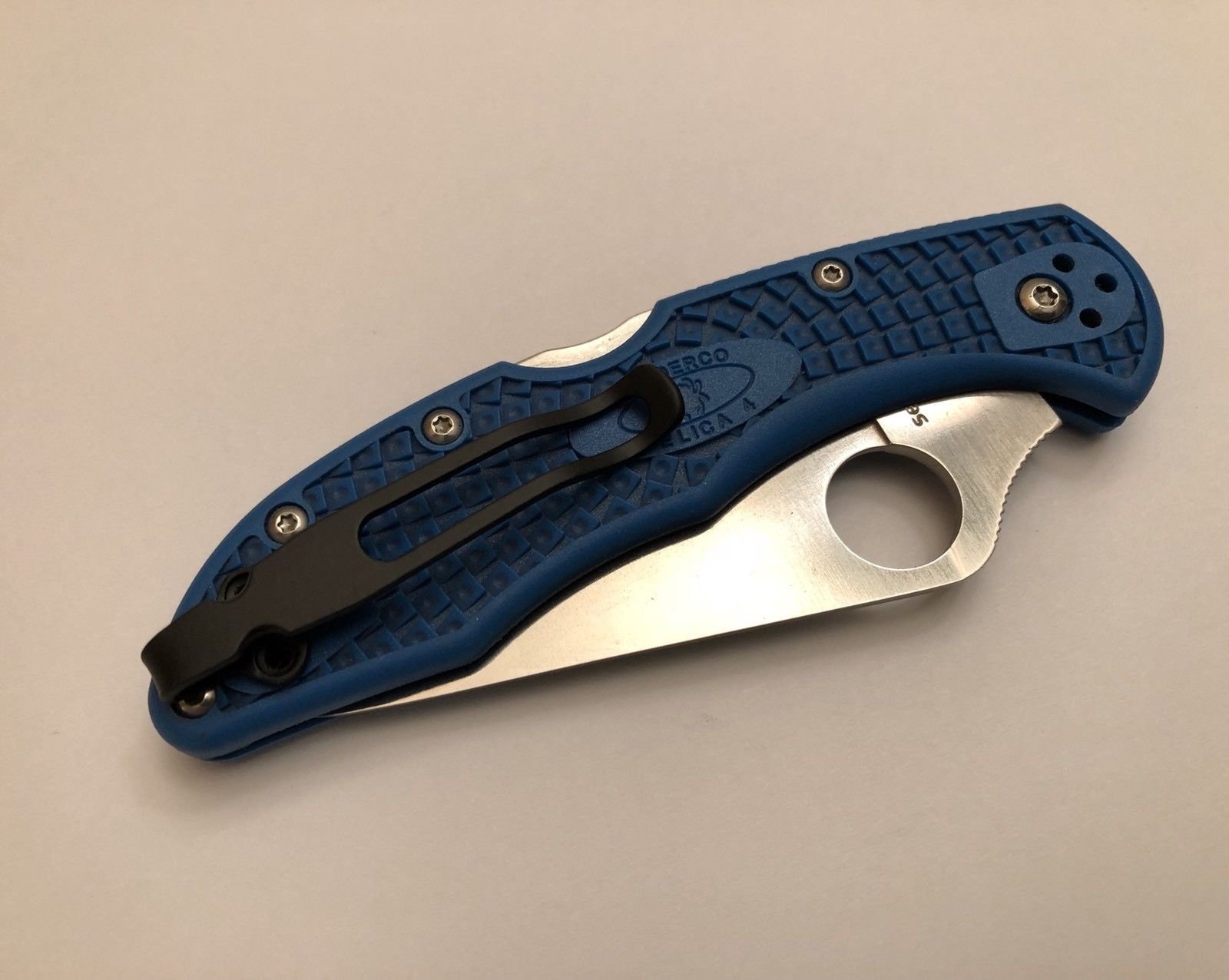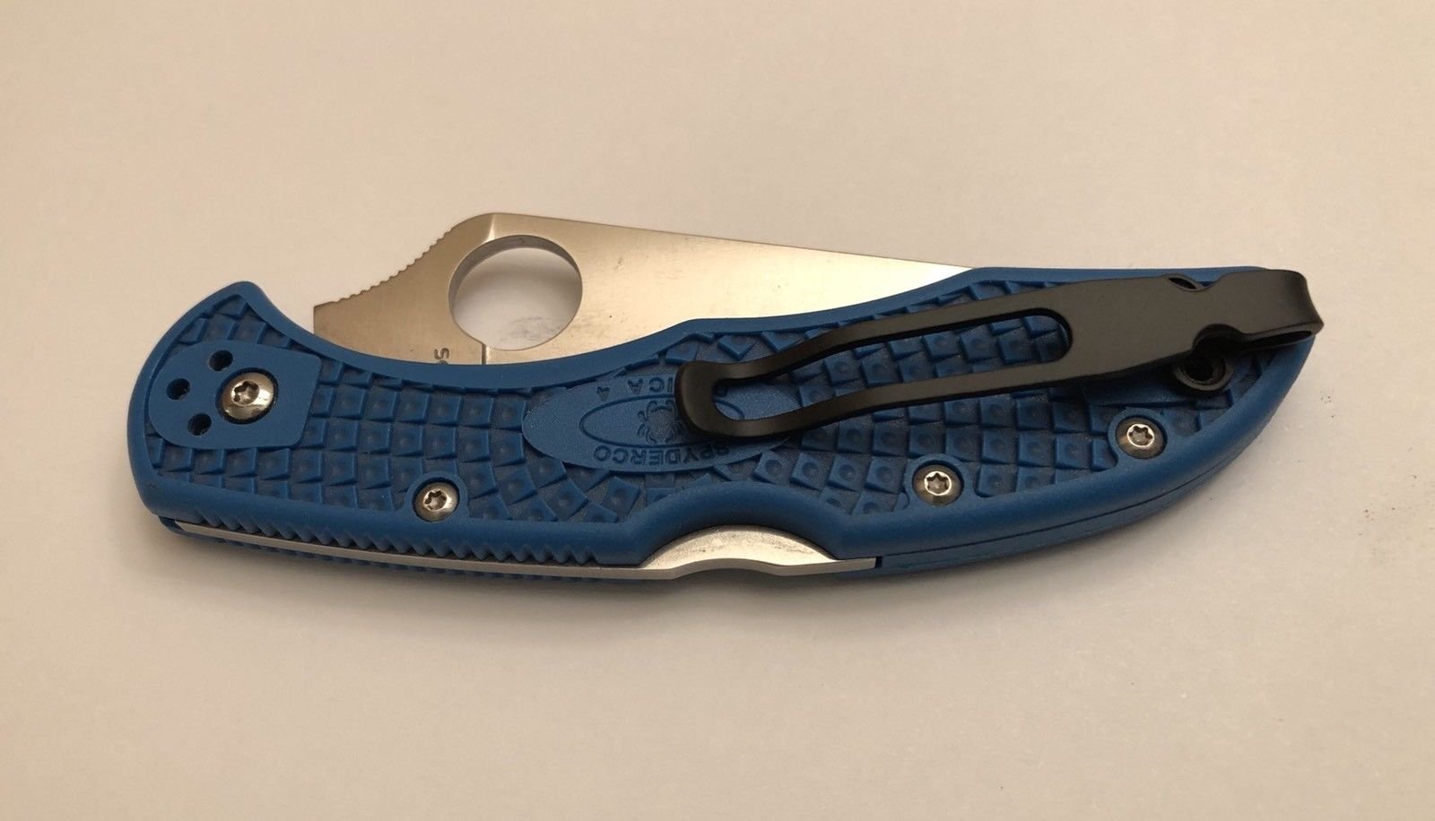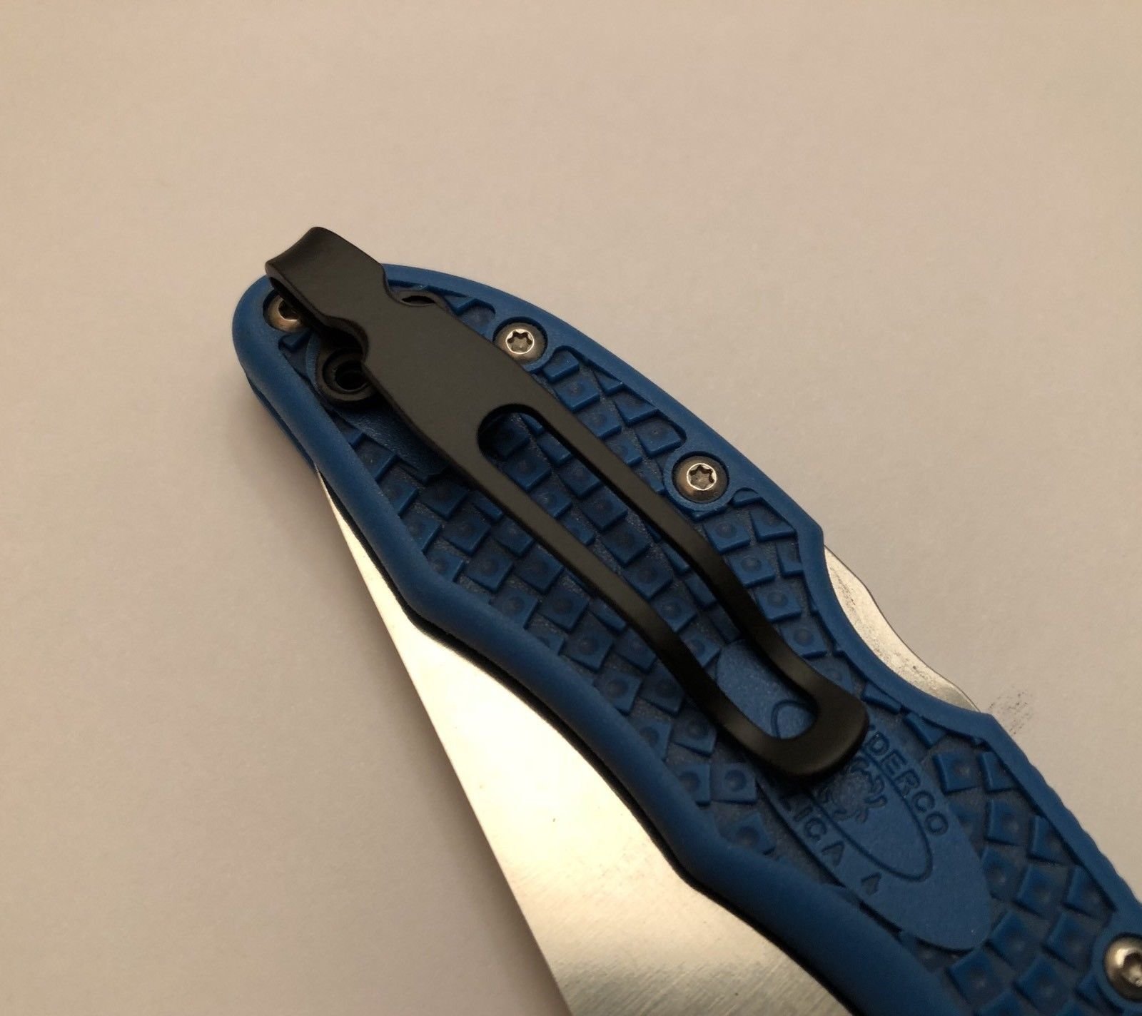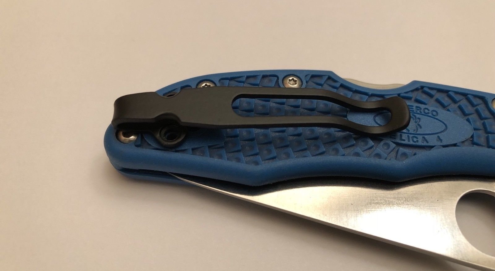 Titanium Deep Pocket Clip Made For Spyderco Delica 4 knife FRN handle models. Tip Up Position. May fit many other related models with same hole pattern. Using only the two outside holes for deep carry design. Clip is made favoring Tip Up Position. Matte Black Powder Coating Finish with holes countersunk to allow the screws to mount flush creating maximum clearance when pocketing folder into thick garment. Knife in photos NOT included! You will be receiving a Titanium pocket clip with 2 Screws only. Sorry will not fit the Chinese and Taiwanese made models such as Tenacious and Domino. Please view our other listings for those models.