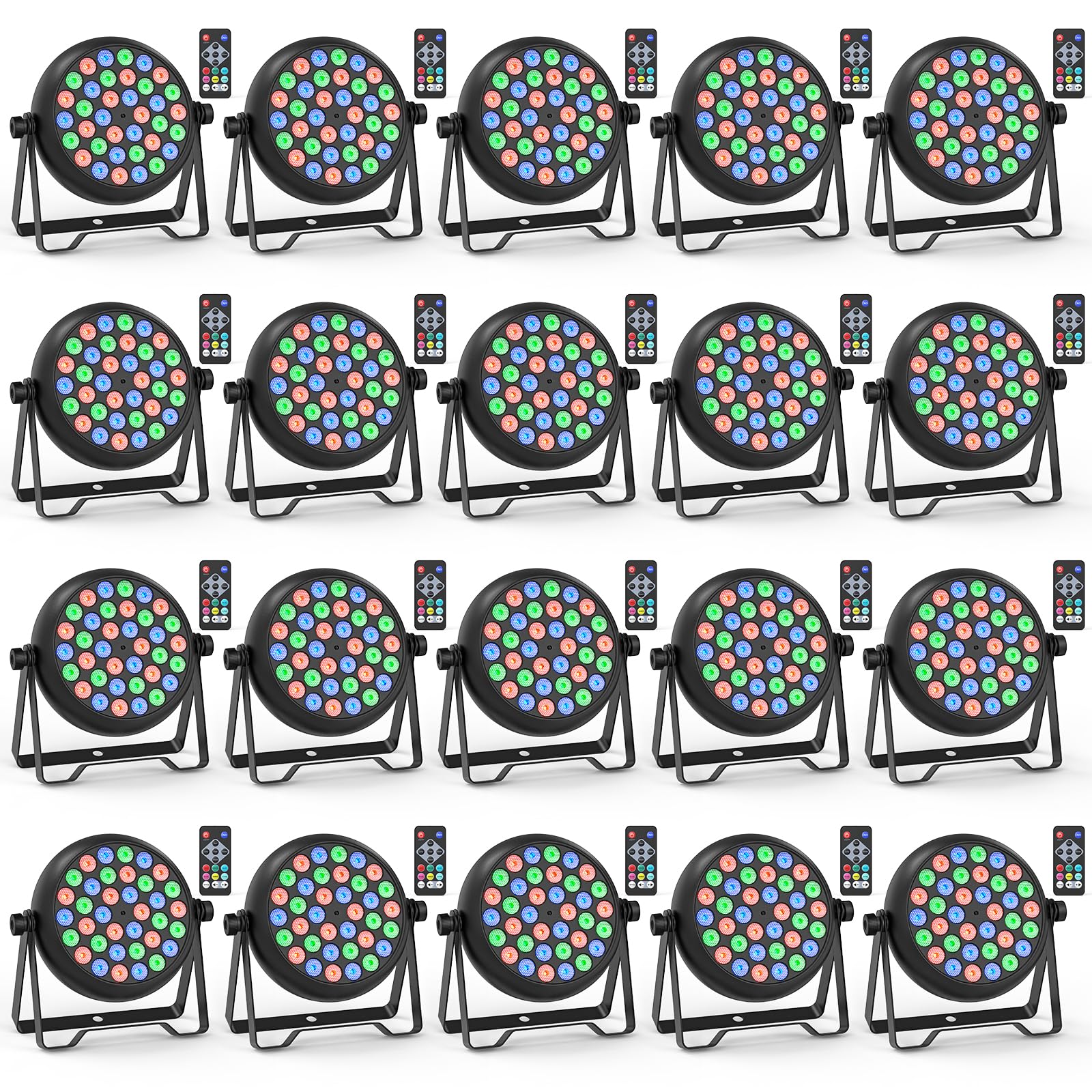 Stage Lights 5 Control Modes - There are 5 contrl modes on our par lights to fit your daily use when you contol the stage lights. They are DMX 512 mode, auto play mode, sound activated mode, master slave mode.