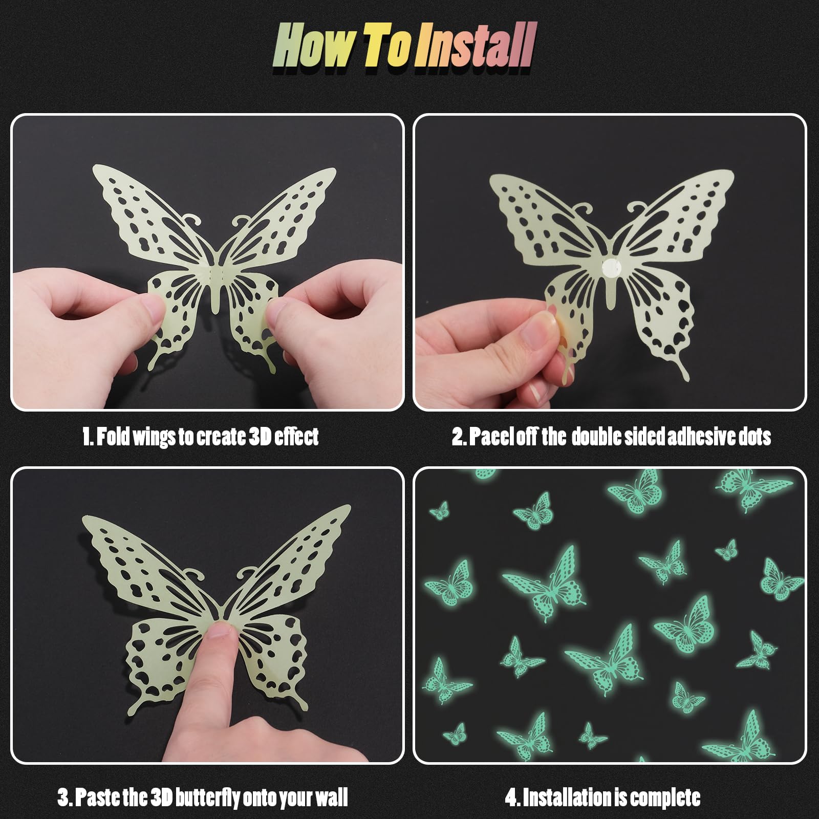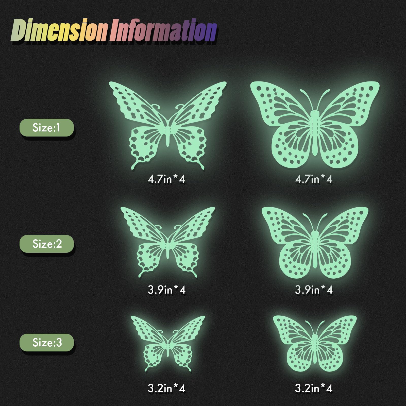 【Package Included】24 Pcs Glowing Butterflies: 12 pcs Style 1, 12 pcs Style 2, each style has 3 sizes(3", 4", 5"). Coming with 24 Pcs double sided adhesive dots.