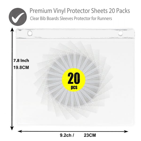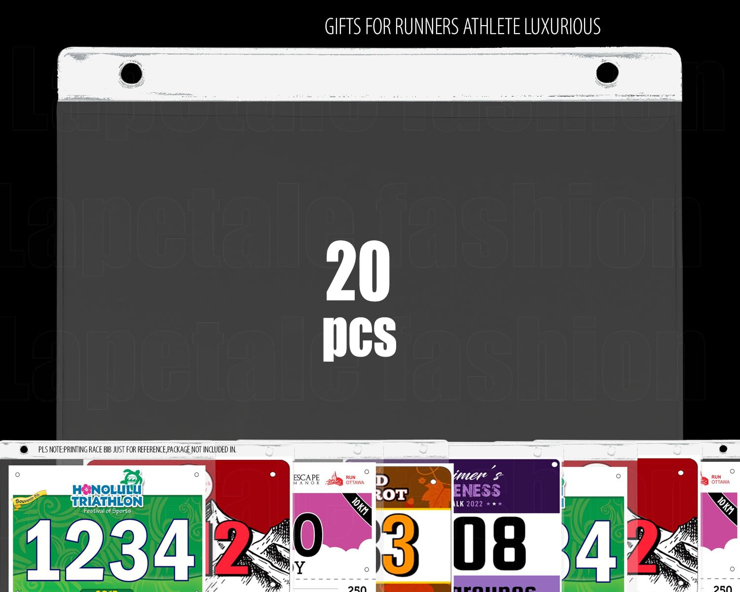 Lapetale Fashion 20 Packs Clear Bib Boards Sleeves Protector for Runners,Race Bib Vinyl Holder 20 Pack,Race Bib Display Vinyl Protector Sheets, Marathon Running Bib sheet protector
