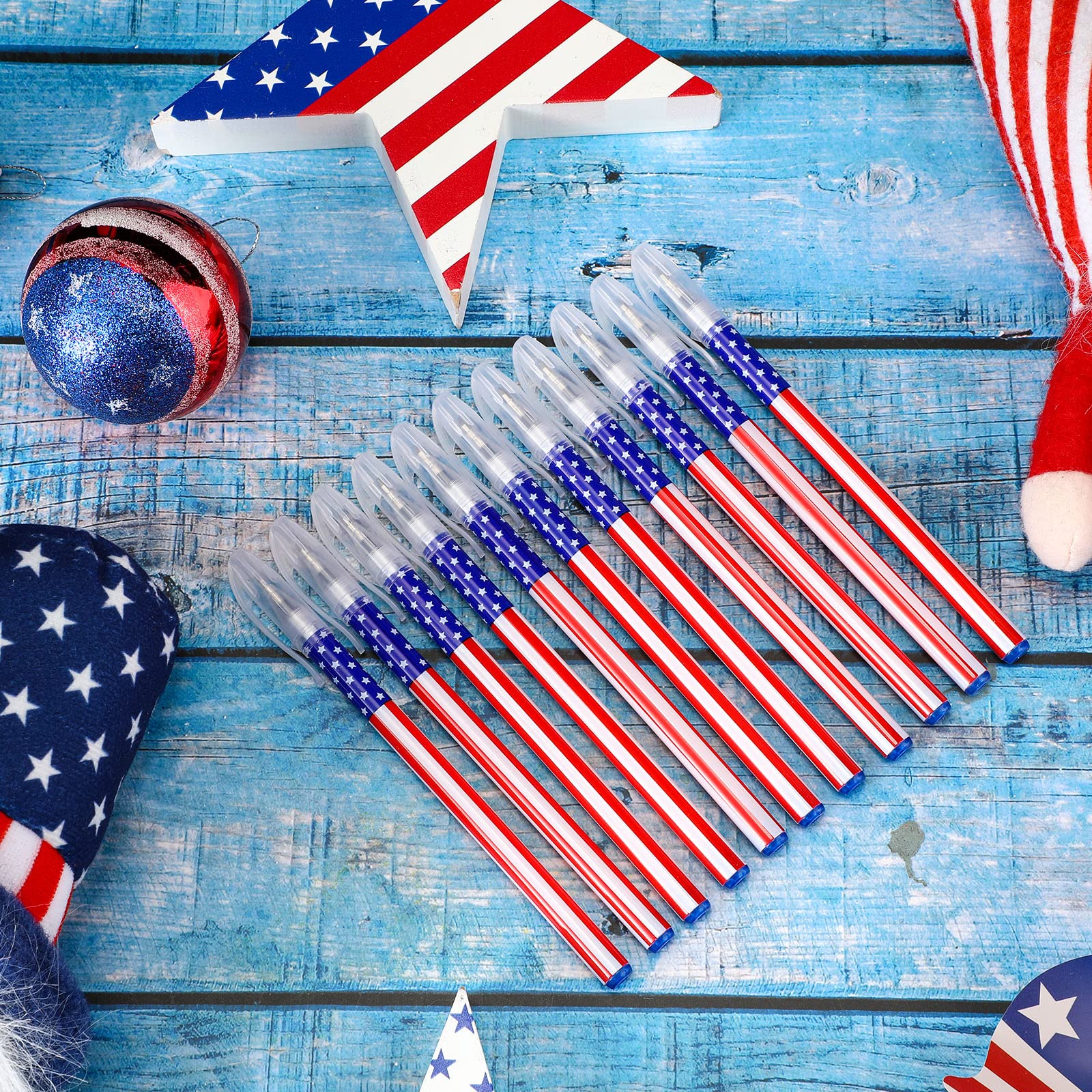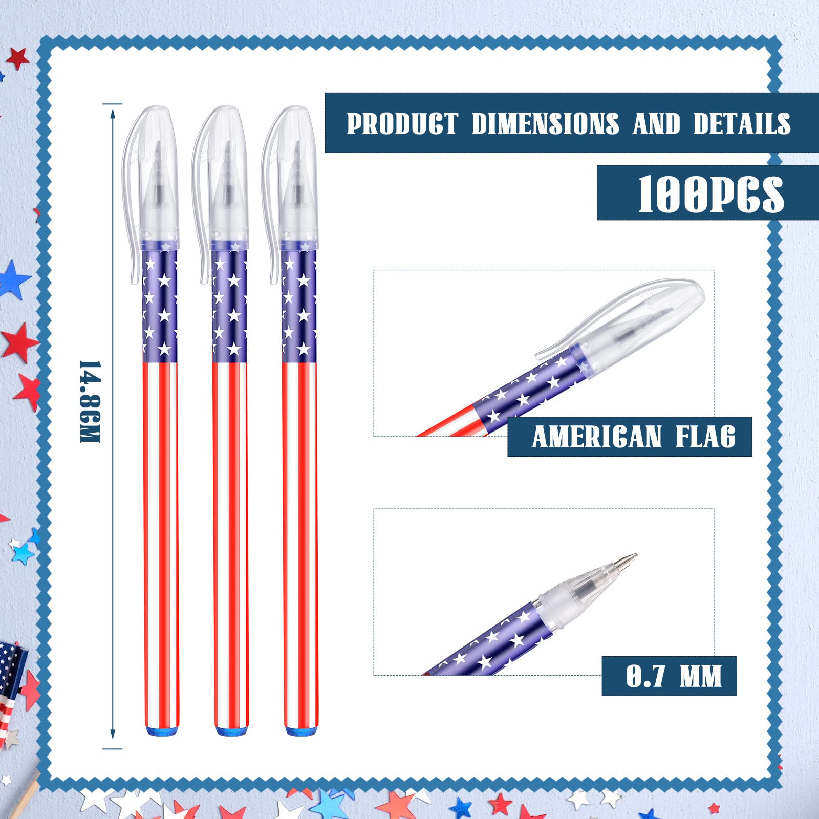 Sufficient to Meet Your Needs: you will get 100 pieces of American flag ballpoint pens, medium point 0.7 mm, black ink pen; Sufficient quantity will meet your using needs, and you can share them with your family