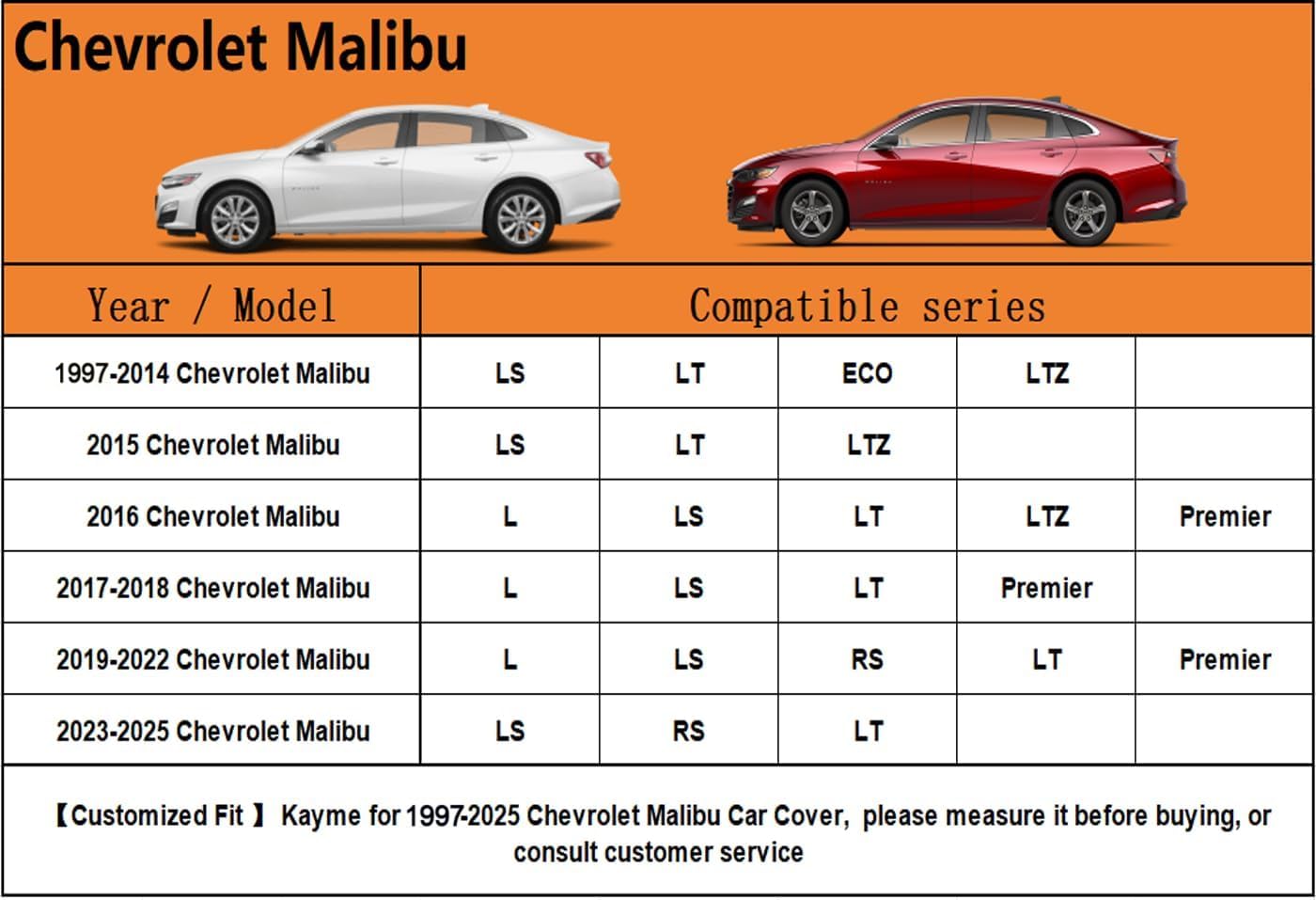 【Suitable for】— Custom fit for Chevrolet Chevy Malibu(1997-2025).Come with a large enough portable bag to store your cover when you do not use