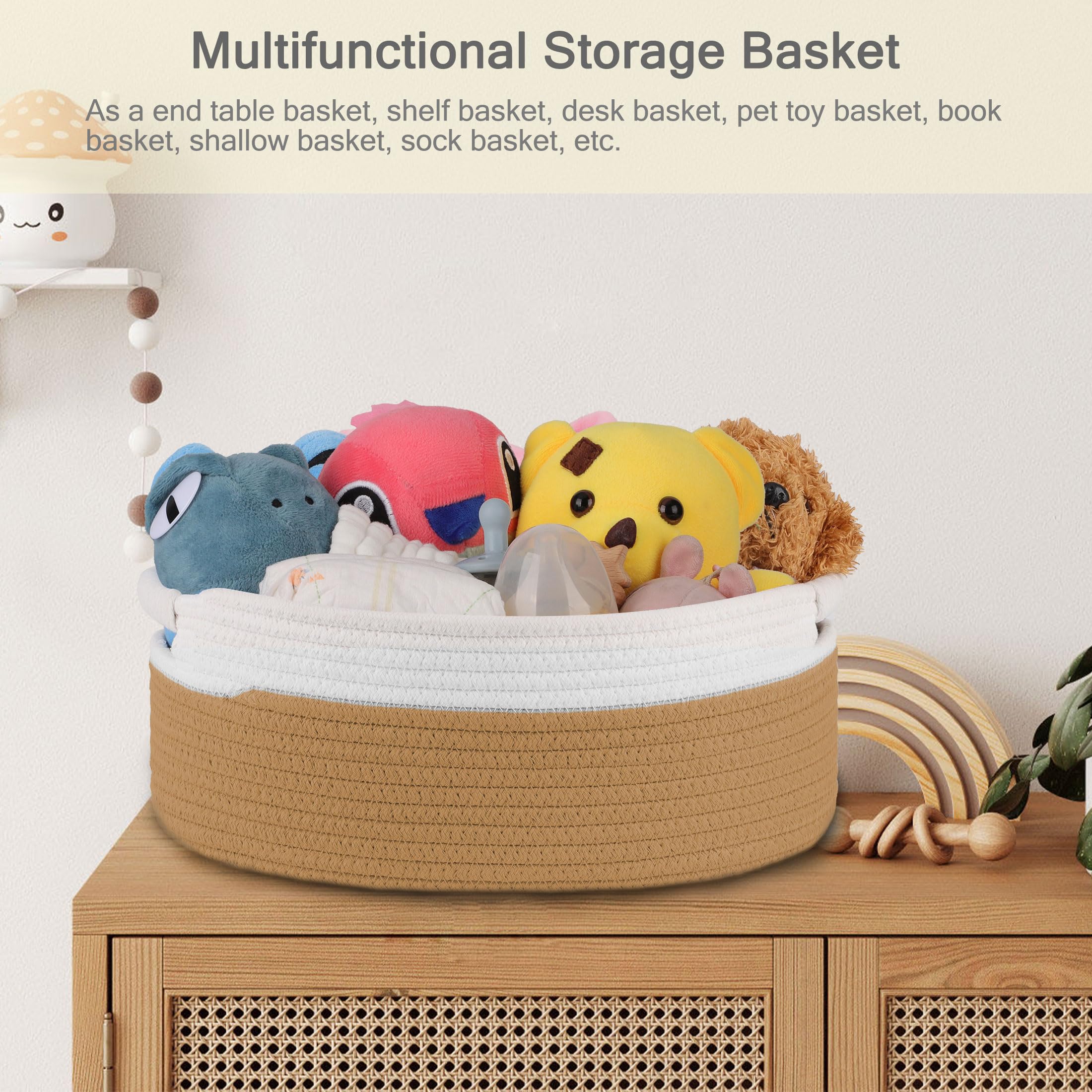【Multifunctional Storage Basket】 Our rope storage basket is the perfect solution for keys, wallets, diapers, books, remotes, toys, makeups, and more. You can use it as a baby basket, end table basket, shelf storage basket, desk basket, kids' toy basket, book basket, shallow basket, and more. It can even be used as a pet toy basket for cats and dogs.