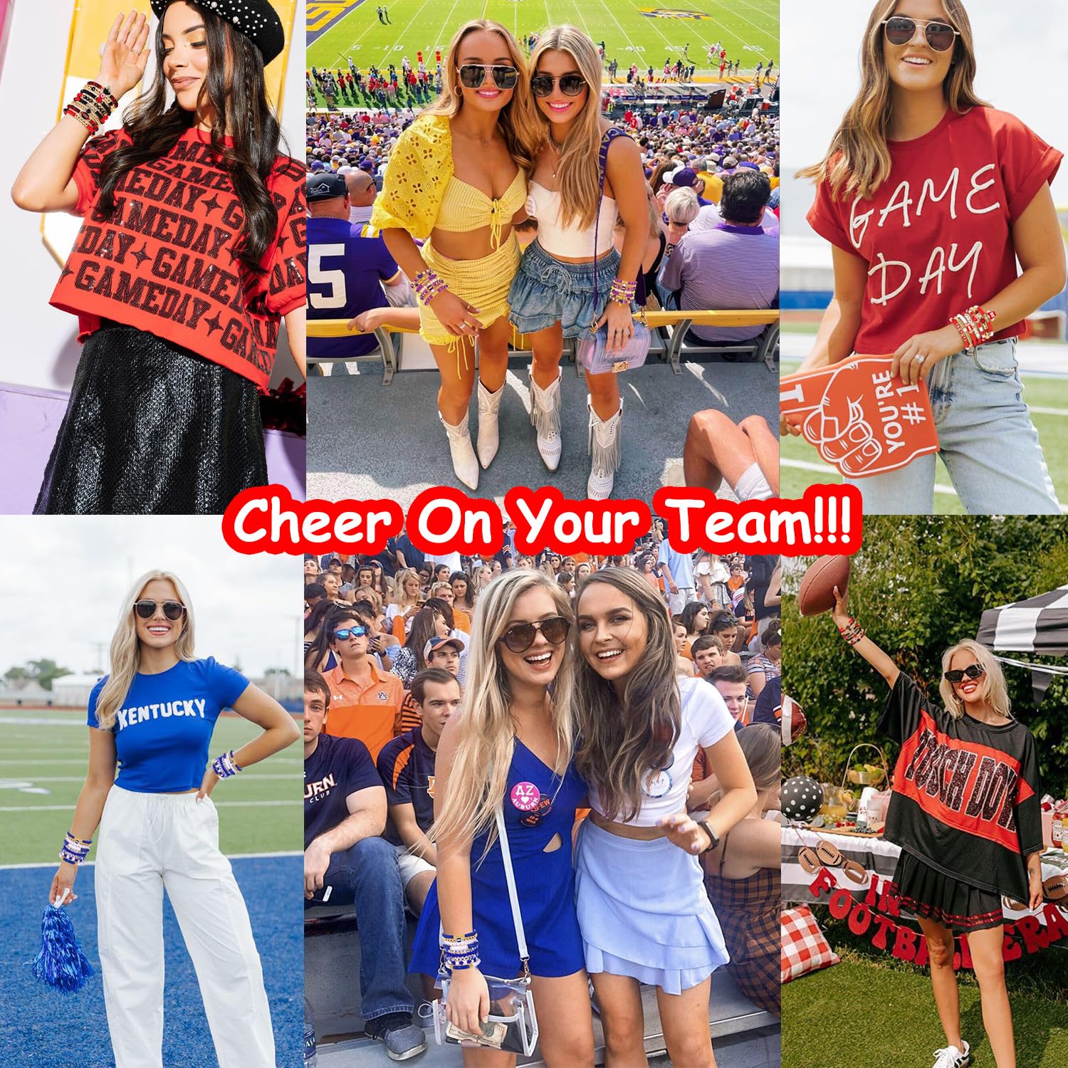 ♥ Premium Quality& Perfect Size -- These Game day beads are made of environmentally friendly polymer clay and acrylic, each flat heishi beads diameter is 6mm with a 2mm hole, thickness is 1mm. Loose beads diameter is 8-12mm, tiny beads is 4mm. These Game day bracelet making charms are made of high quality alloy, length about 0.6-1.1inch. Enough quantity, classic football team colors and various styles can easily satisfy all your Game day football jewelry accessories making demands