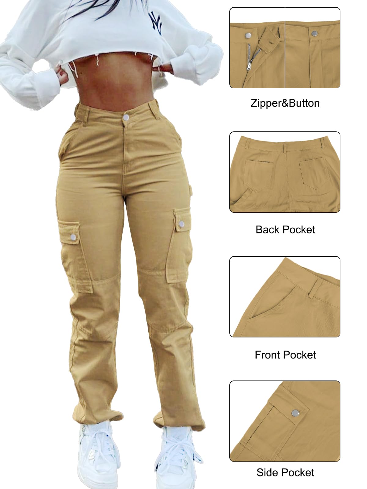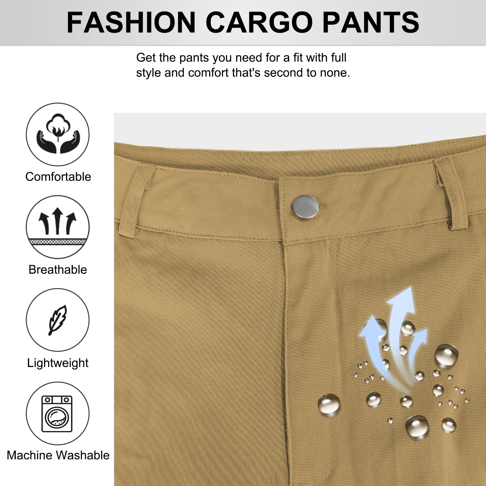 【Design】Womens cargo pants feature 6 versatile pockets, 2 deep side pockets for phone, wallet and keys, and 4 pockets for your essentials.