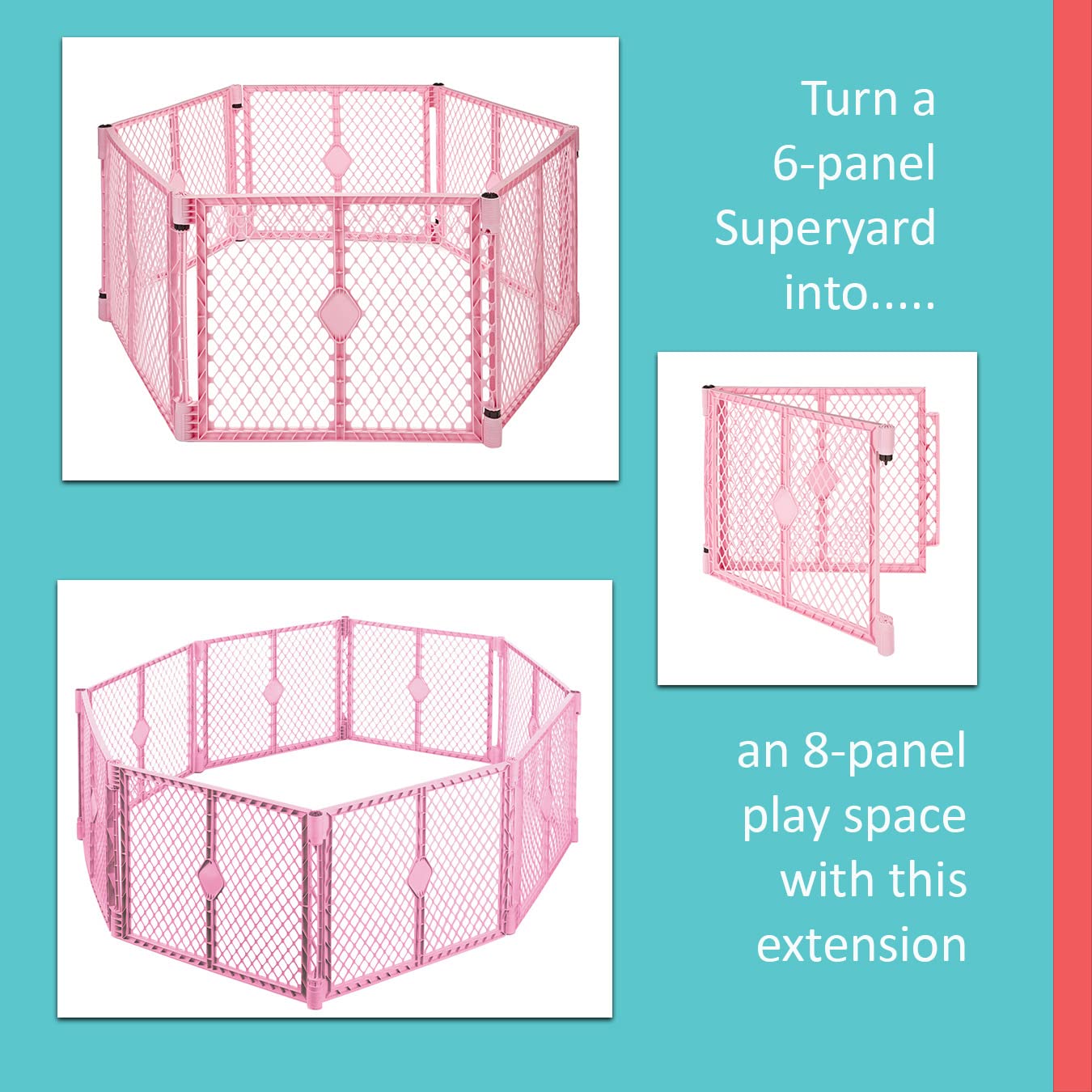 About the Superyard Baby Play Yard: Large spaces make it even tougher to keep tabs on your child! Ensure he or she is safe and secure with our baby playpen designed for indoor or outdoor use. The UV-resistant design keeps colors vibrant and ensures long-lasting durability. The 6-panel play yard encloses up to 18.5 sq. ft. and is 26 in. tall. The 6 pre-connected panels come ready to go, simply unfold and connect the ends together. Our portable baby fence folds quickly and includes a carry strap for easy transport. This baby barrier features SuperGrip feet and skid-resistant pads to prevent movement and protect hardwood floors. The plastic play pen has self-locking hinges that only bend in one direction. The clicking noise ensures the hinges are locked. For added home safety convenience, the play yard can be converted into an extra-wide baby gate using our Superyard Wall Mount Kit (sold separately). Every Toddleroo by North States play yard is JPMA and ASTM certified. Our plastic gates and plastic play yards are made of non-toxic polypropylene and pigments that contain no heavy metals (no lead), no Phthalates or PVCs, and are BPA free. Proudly made in the USA. About Toddleroo by North States: We pride ourselves on U.S. manufacturing because it allows us to maintain the highest standard of quality control. Since 1953, our products have been built by skilled craftsmen and women who are dedicated to making the finest products in America. Our innovative, superior-quality products are designed to achieve the highest standards in safety, durability, and ease of use. You’ll always find us ahead of the curve and on the cutting edge of the industry.