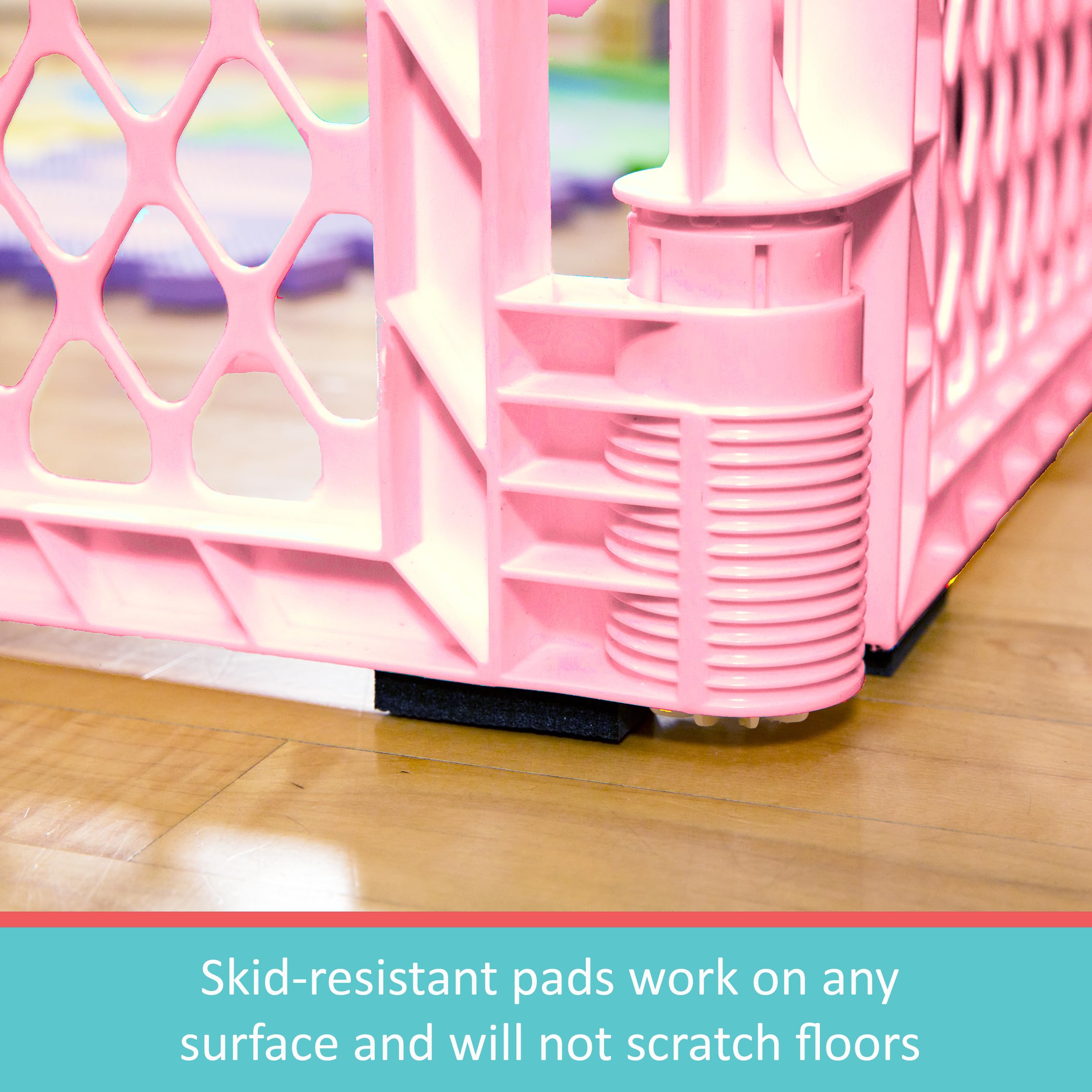 INDOOR & OUTDOOR USE - Our baby play yard is great for indoor or outdoor use. The UV-resistant design keeps colors vibrant and ensures long-lasting durability. The SuperGrip feet and skid-resistant pads prevent movement and protect hardwood floors.