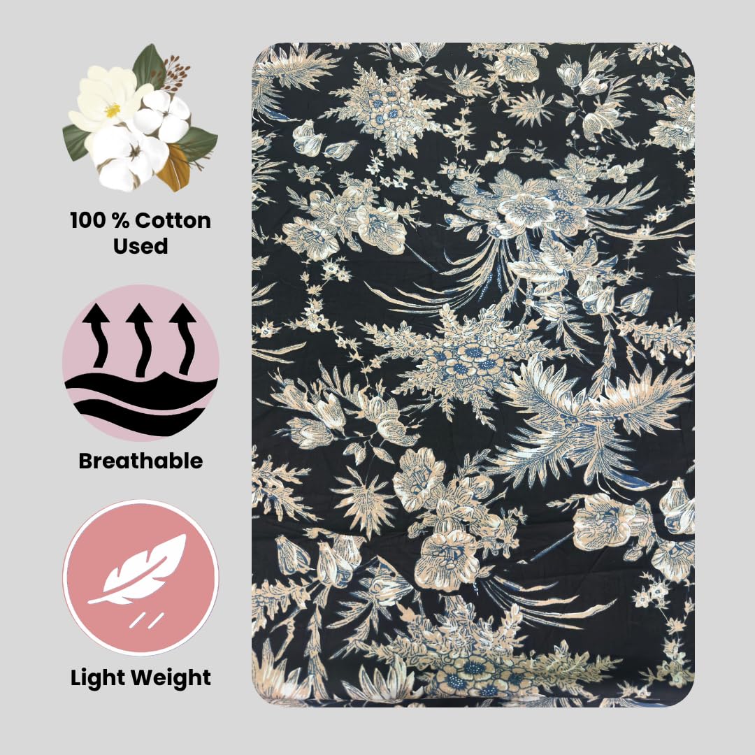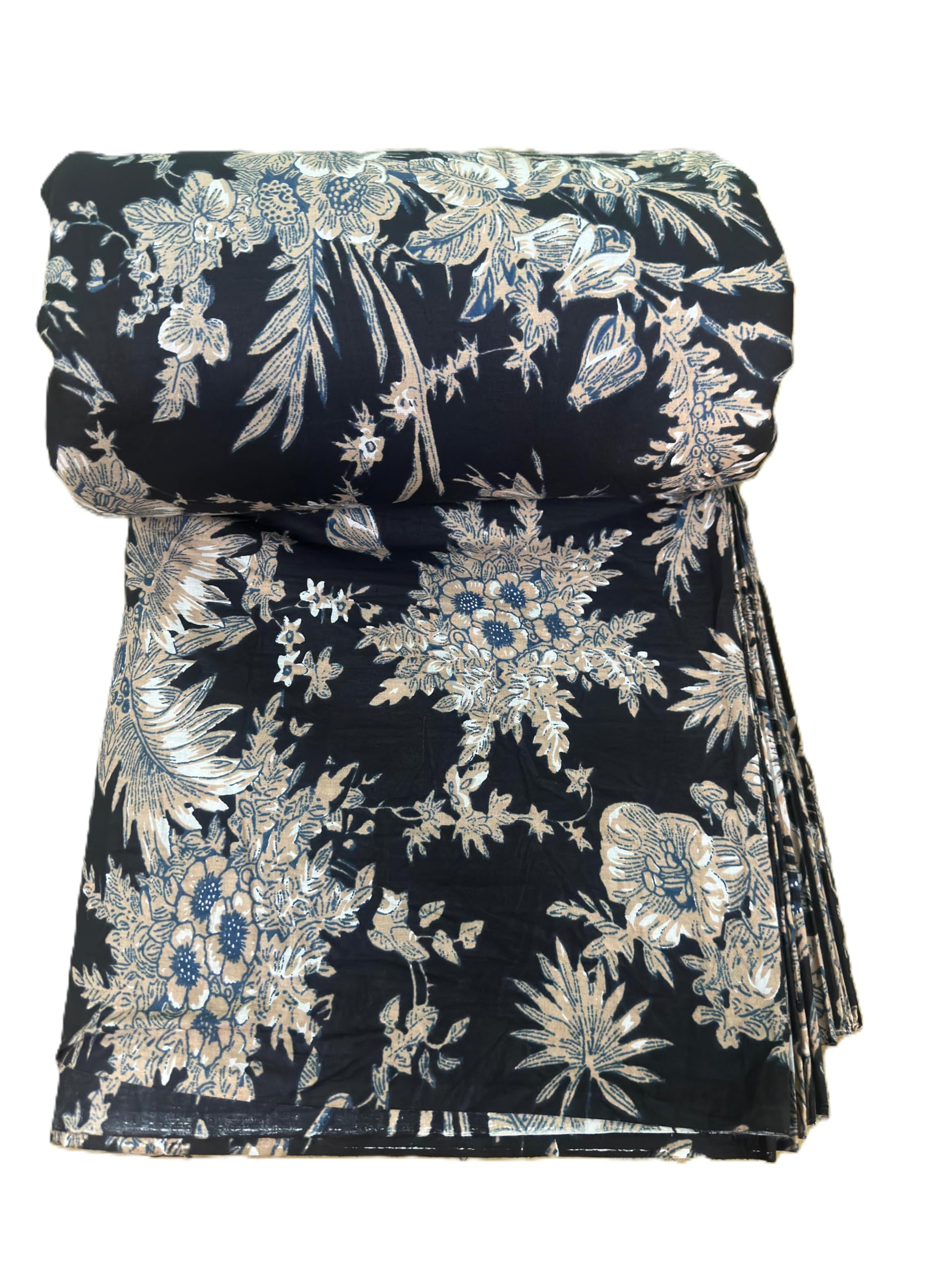 Hand Block Printed: Each design is carefully carved onto wooden blocks and printed by hand, giving the fabric a unique and authentic touch.
