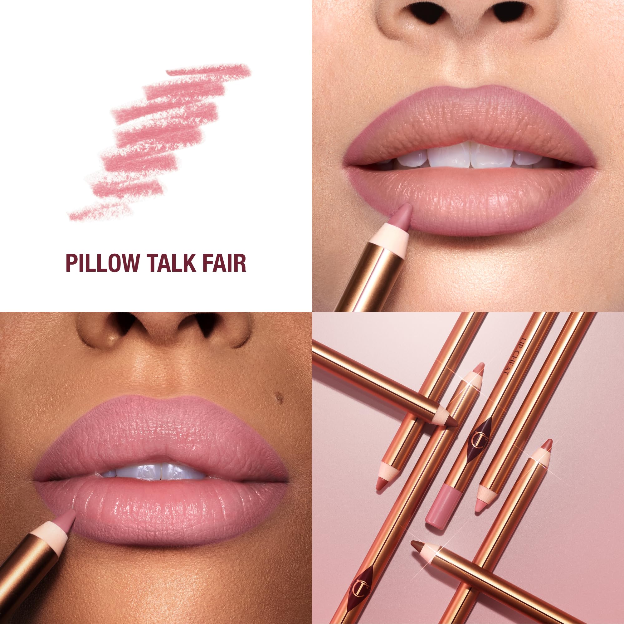 Darlings, resize and reshape the look of your lips for a wider, fuller looking pout with my Lip Cheat lip liner in Pillow Talk Fair! Pillow Talk Fair is a cooler-toned nuanced pink shade inspired by my globally-adored Pillow Talk hue that's perfect for fair skin tones! Lip Cheat is my backstage beauty secret for fuller, wider looking lips! The velvety, waterproof formula glides onto your lips and smooths over texture for a seamless line, so you can resize and reshape the look of your lips effortlessly! Tilbury Tip: Use with K.I.S.S.I.N.G lipstick in NEW! Pillow Talk Fair for the most magical, fuller-looking soft pink pout! One pillow talk product sold every 2 seconds!* *Market rankings based on Circana NPD Prestige Beauty Data FY 2023 value sales