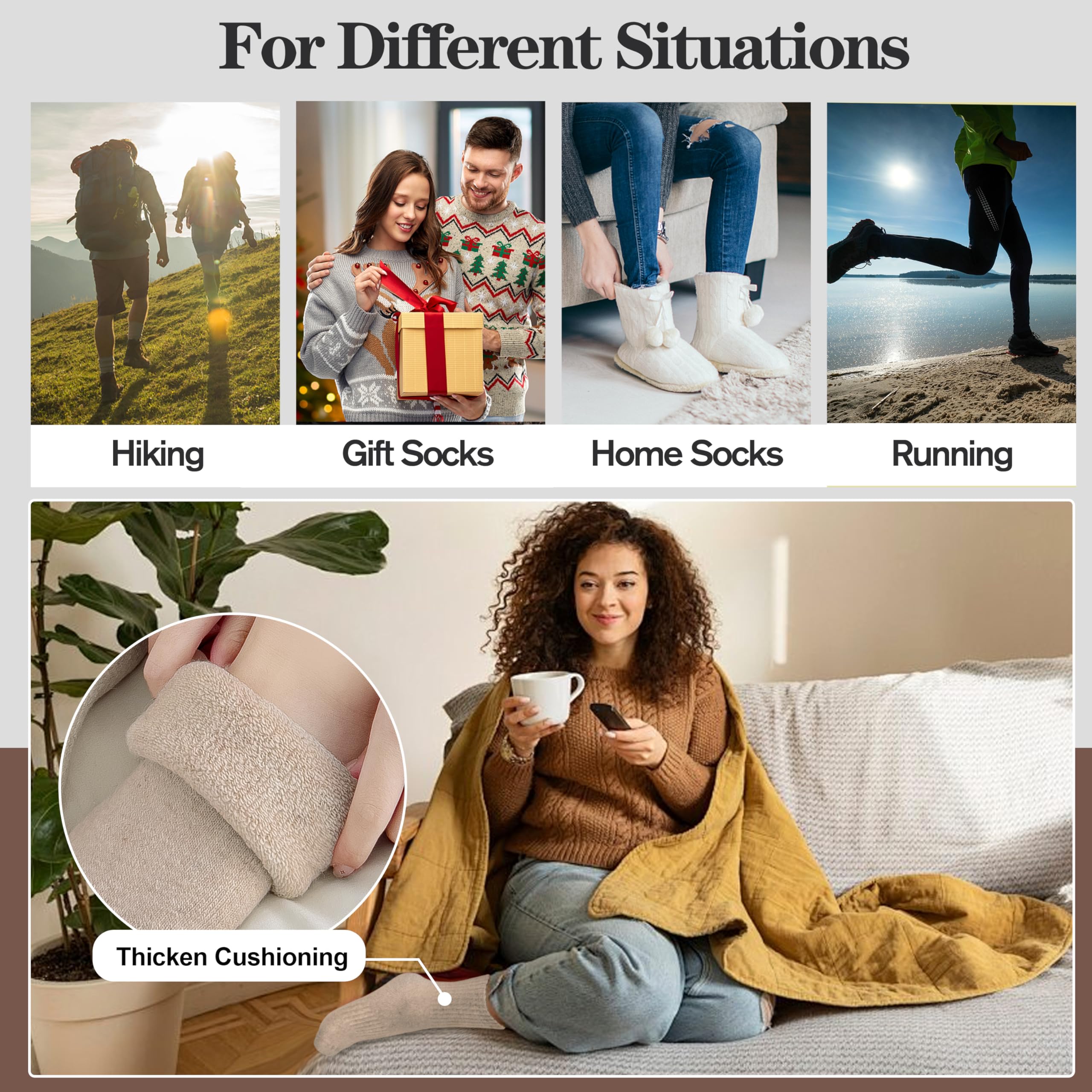 FIT MANY OCCASIONS : These high-quality womens warm wool socks are suitable for different situation, you can wear them as heavy socks, hiking socks,thermal socks, thick socks, warm socks, heavy duty socks, boot socks, soft socks, outdoor socks, sport socks, cabin socks, crew socks, office socks, school socks, indoor socks, home socks, work socks, knit socks,novelty socks, comfy socks, cold weather socks or Christmas socks.