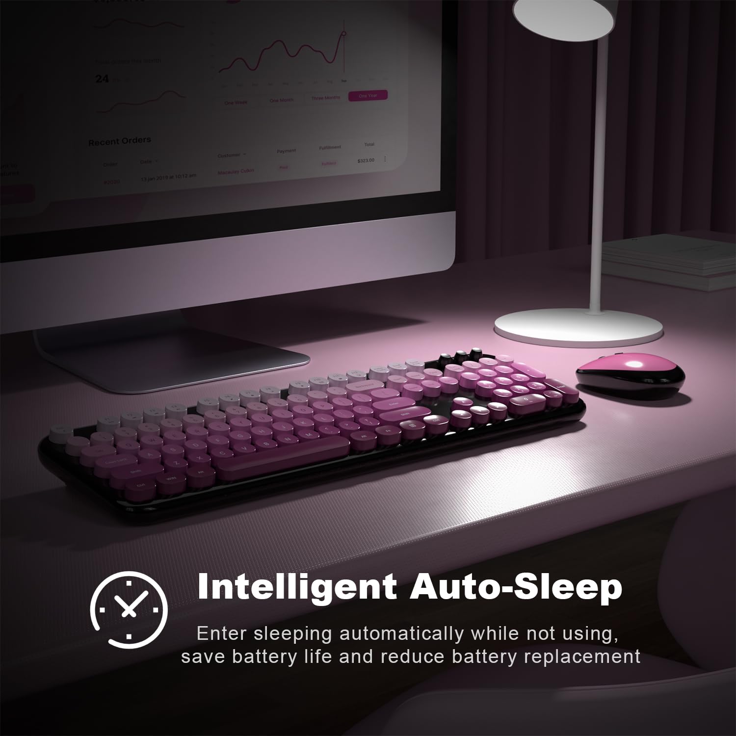 【Automatic Power Saving Functionmode】If you don't use the keyboard for more than a minute, the keyboard will auto-enter the sleep mode to save power, which greatly prolongs the battery life, Click any key or button to wakes up within 2 seconds, If one day the keyboard suddenly does not work, please replace the battery and try to use it, when the battery is dying, the low battery indicator on the keyboard will remind you to replace the battery.