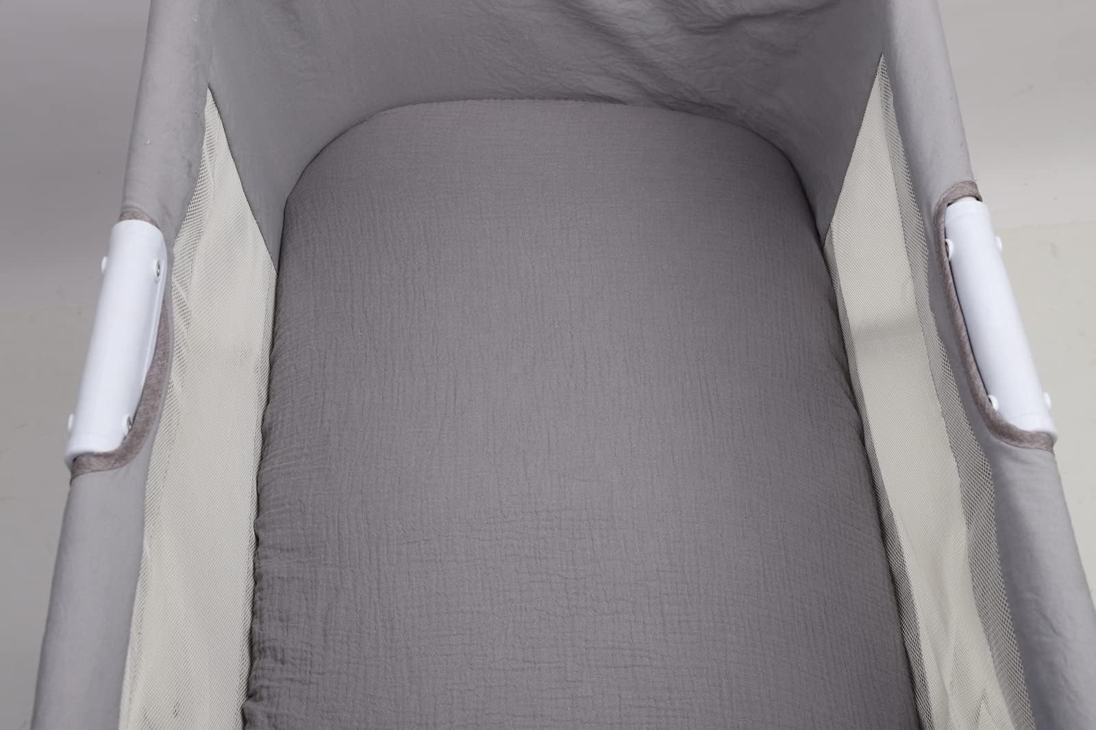 100% Premium Muslin Bassinet Sheets by Onacosht Our muslin bassinet sheets are made of premium 100% cotton muslin, lightweight, breathable and ultra soft. Flexible Size Measures 33"x19"x3", compatible Baby Delight, Mika Micky, Dream On Me, ANGELBLISS, Papablic, Koola, AMKE, Nordmiex, Maxi-COSI Baby Bedside Bassinet, BABY JOY Baby Bedside Crib, RONBEI Bedside Sleeper. Perfect for sensitive skin Muslin cotton is ideal for newborn babies. The open weave allows for airflow to regulate temperature while the soft, lightweight feel is gentle on sensitive skin. Our muslin bassinet sheets provide a cozy layer of natural comfort between baby and mattress, and tightly-woven construction provides super quality and safety. Secure, wrinkle-free fit The fully elastic edge and extra deep pockets provide a snug fit on bassinet mattresses. Sheet stays securely in place all night without popping off, sliding or bunching. Sweet prints for boys and girls Simple and sweet prints for boys and girls, which coordinate with any nursery style, and match muslin swaddles, blankets and other accessories available. Easy care Machine wash warm and tumble dry low. Avoid bleach. Sheet may shrink up to 5% after first wash. For best results, wash before first use. Multiple washes will soften sheet even more.