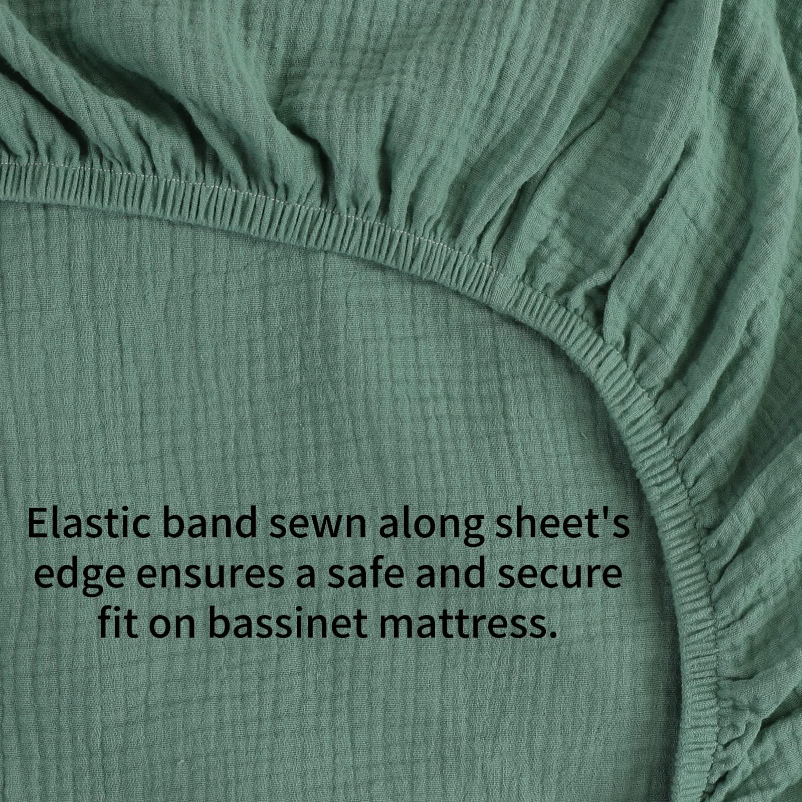 Pre-washed for premium softness, these muslin bassinet sheets are cozy and skin-friendly, delightful for all seasons.