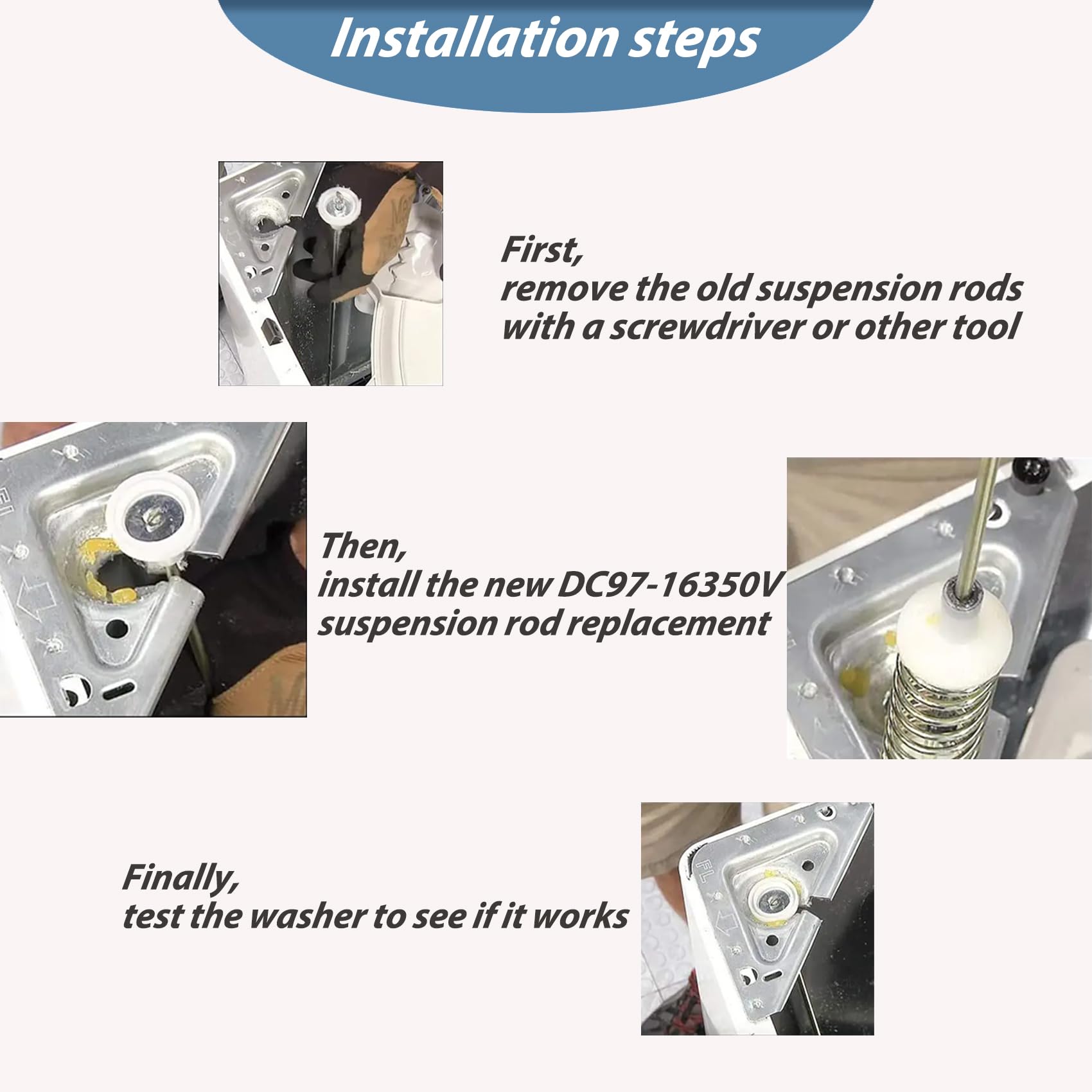 【DC97-16350V Installation】The replacement of DC97-16350V suspension rods take a very short time, and in 20 minutes you will have a working washer and your clothes will be clean. Before getting started, you can check out the installation tutorials on you tube to set you up for success.