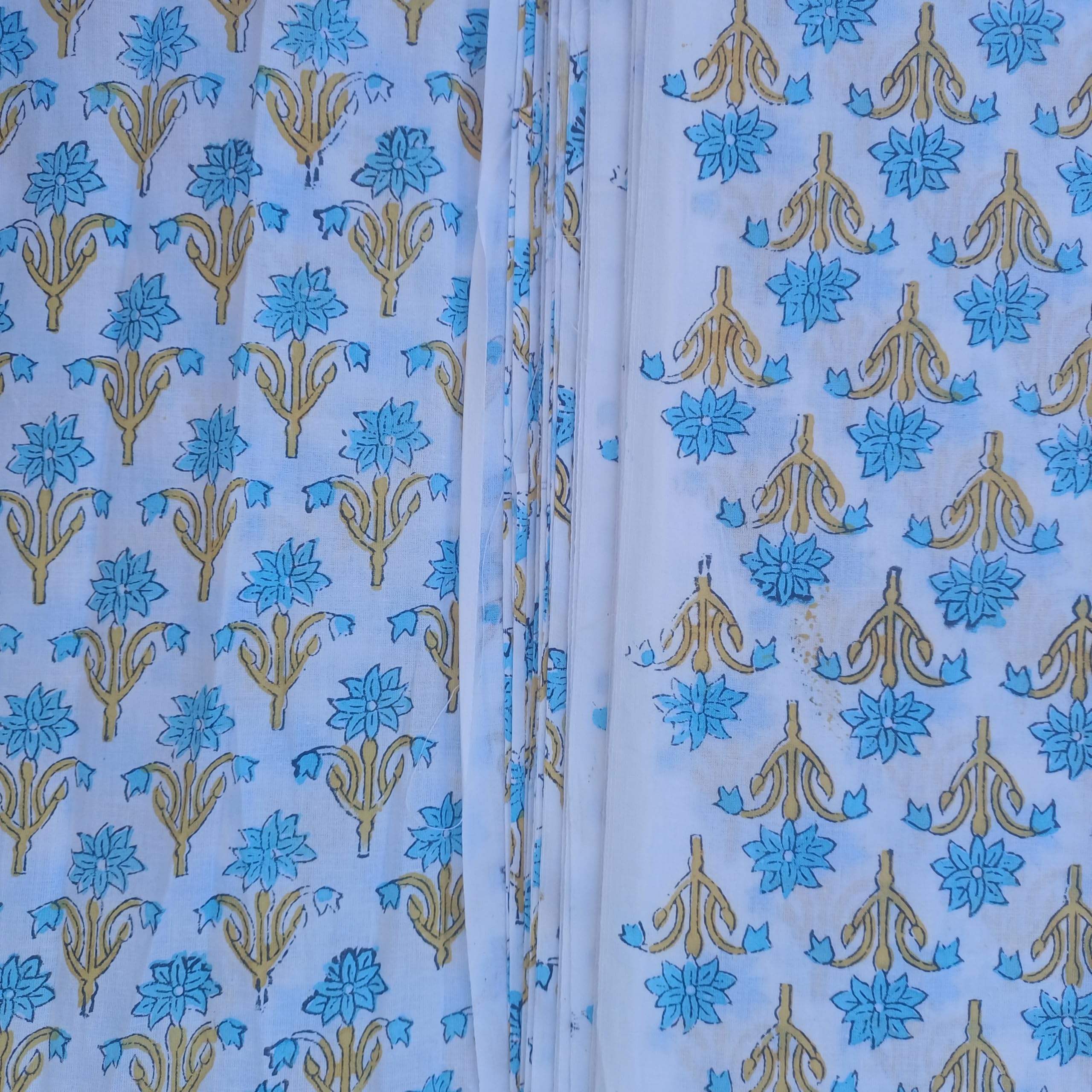 Feather soft cotton made block print fabric by yards. This fabric is hand crafted by the artisans of Rajasthan. This block print fabric by yards is available in all colors and block print floral designs. Use of vegetable dyes that are eco friendly and skin soft. You can use these in making dresses of block print fabric, napkins, dinner cloths, handkerchief, covers and wraps of block print and block print curtains and block print home decor. This Indian block print consists of floral prints that made on wooden blocks, and then dipped in dye and hand pressed on the fabric. The fabric itself is ultra light and breathable having the properties of cool nature. It is good to go with any color matching as it has plesant block printing color. Super soft and ultra light breathable block print fabric Dyed of Natural vegetable colors without any chemicals Multicolors available in block print fabric. Fabrics measured in yards, 44 inch wide Slight color variation due to hand printing COtton voile fabric, Indian block print. Dress Making, Sewing, Crafting, Napkins, Beachwears, Sarong, Pareo, Scarf/ Scarves, Kaftan, Kurtis, Tops, DIY Prjects and much more.
