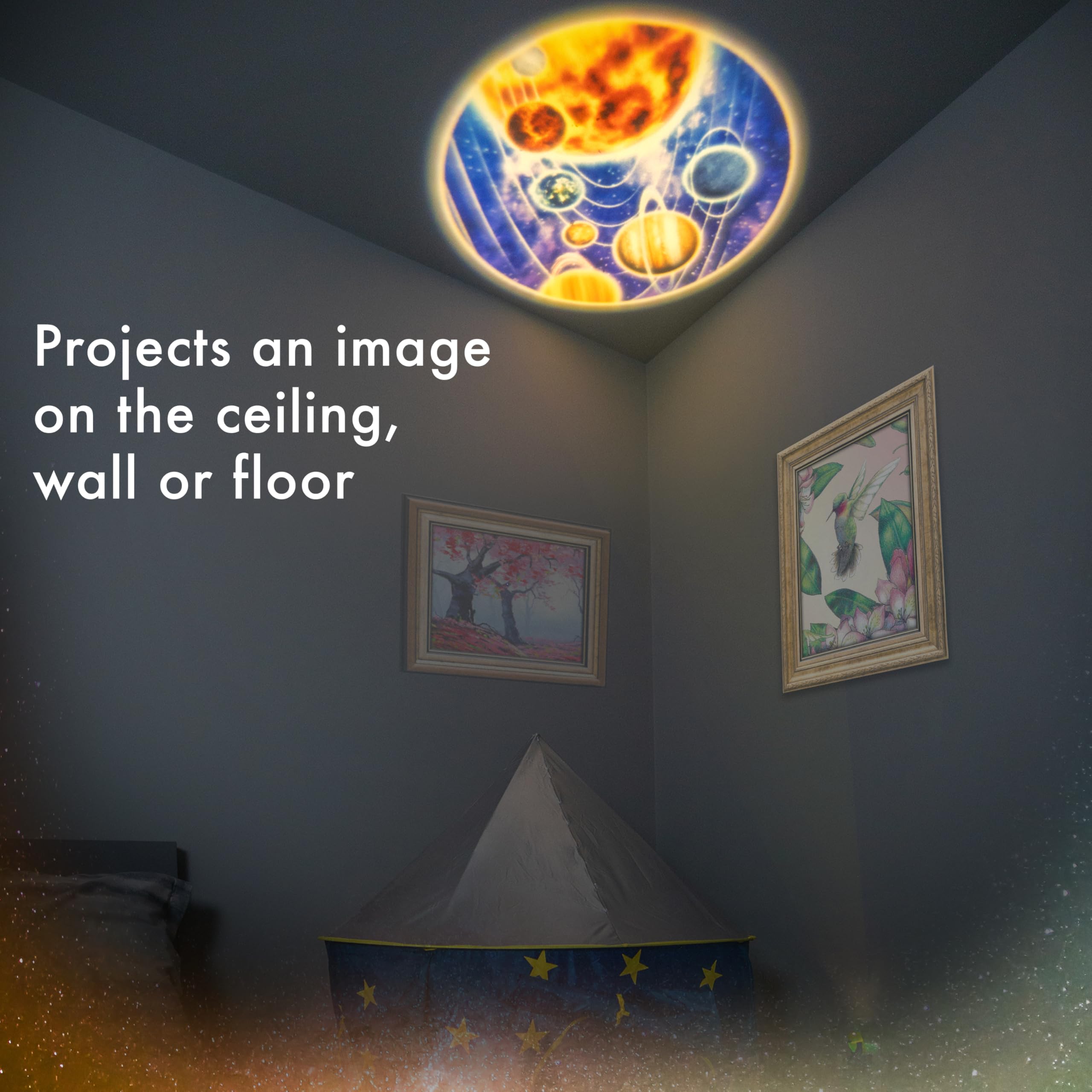 Projects an approximate 3 foot scene of the miraculous environments of our planet and universe
