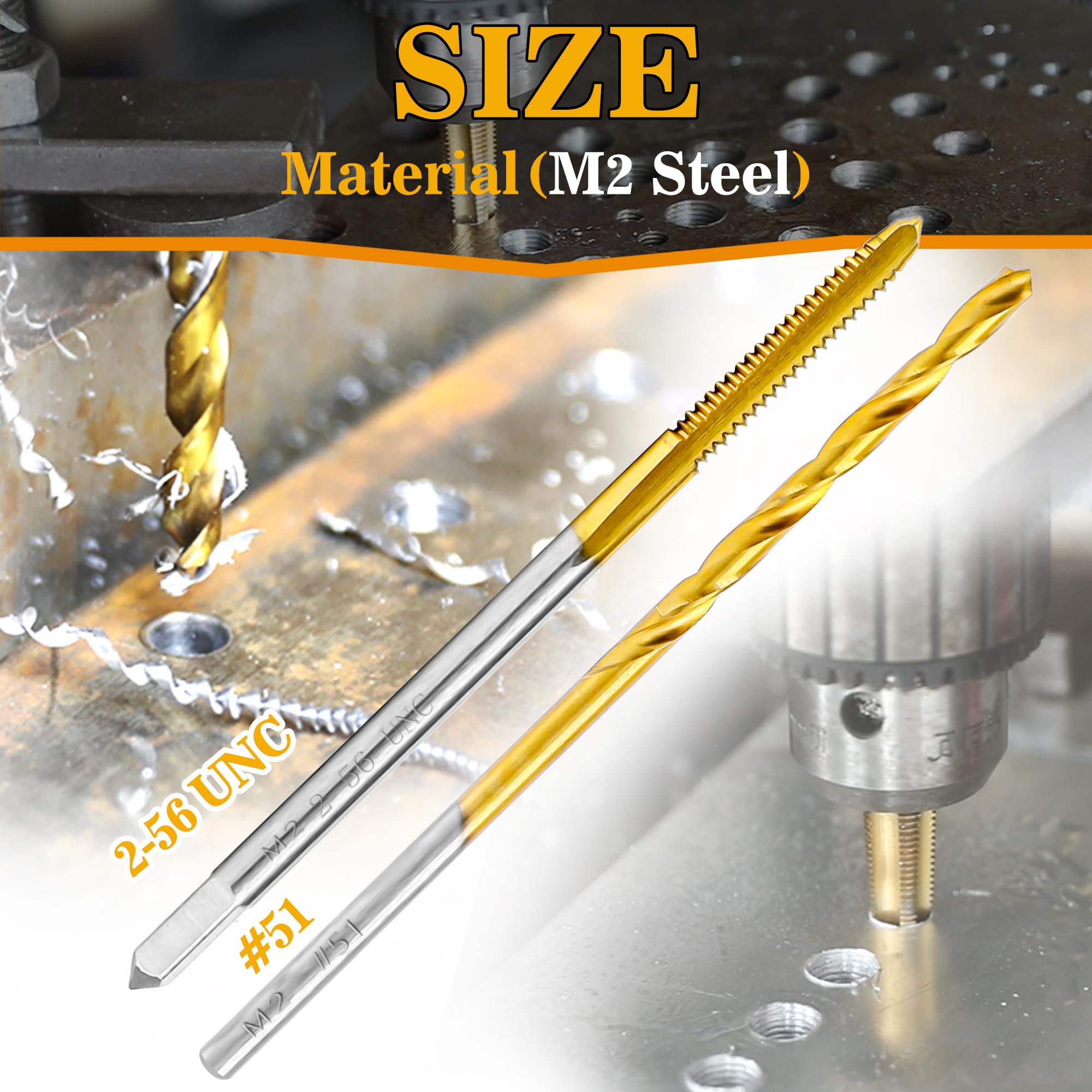 【Size】Include 2-56UNC M2 steel tap and #51 M2 HSS drill bit with round shank,all stored in a storage box for easy carrying.