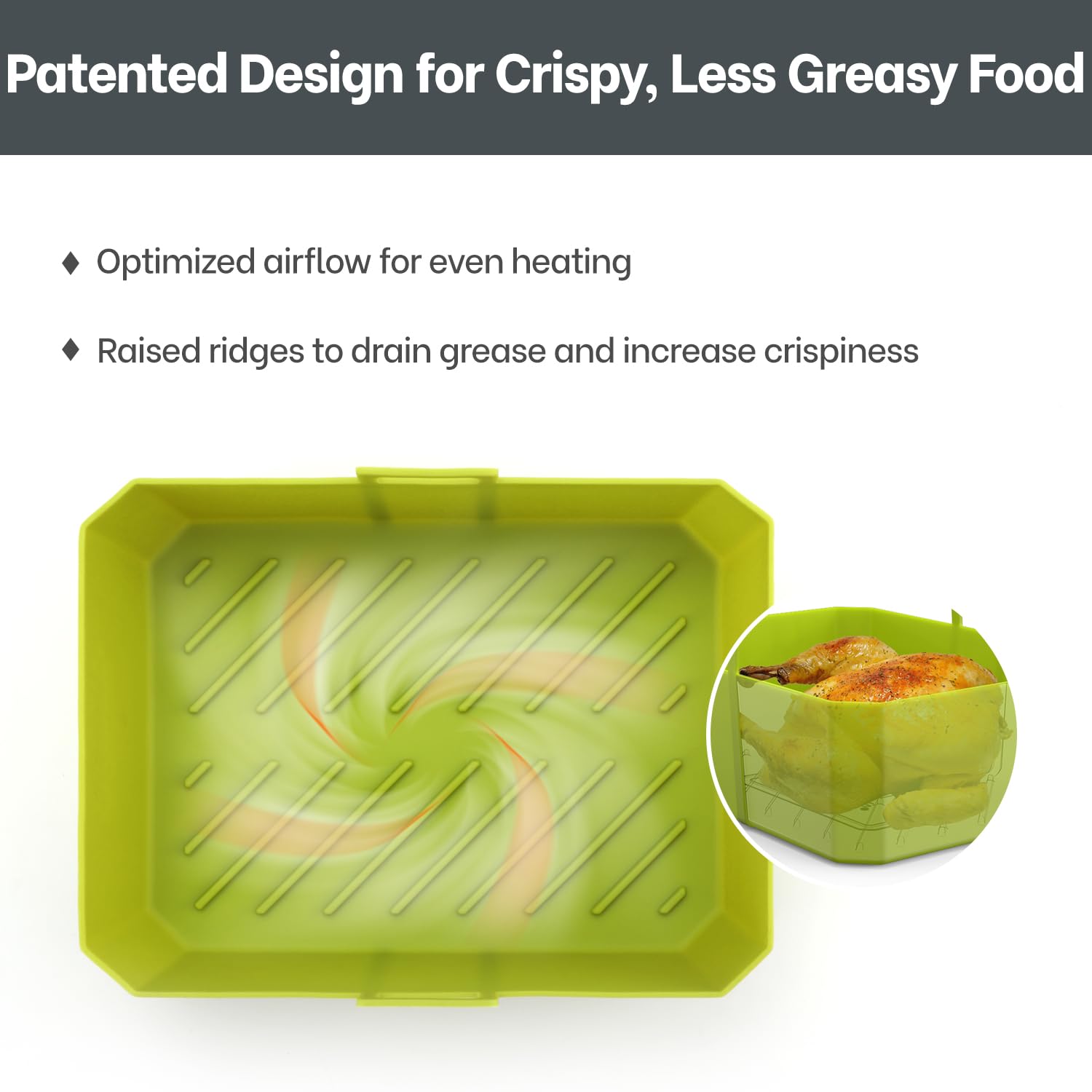 MUST-HAVE AIR FRYER ACCESSORIES: Upgrade your cooking with the NEWITEE patented air fryer liners! These innovative air fryer liners feature deep grooves on the bottom to enhance airflow during cooking, ensuring crispier results while reducing excess oil. The liner set includes two distinct colors, allowing you to separate liners for meats and vegetables—perfect for maintaining healthy and organizing your meals