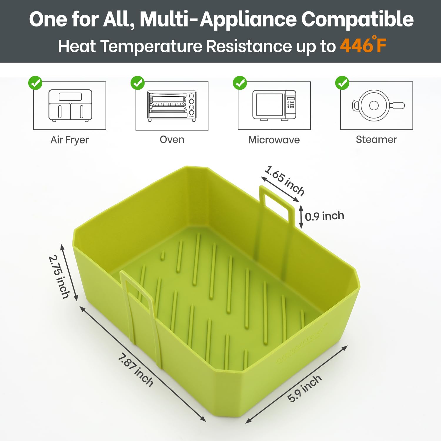 SNUG FITS Ninja 10QT AIR FRYERS - These precisely sized silicone liners (7.9 x 5.9 x 2.8 inches) are engineered exclusively for Ninja 10QT DoubleStack XL and DualZone XL 2-basket air fryer models, including DZ401 and DZ550. Raised height ensures full protection for your air fryer baskets, keeping your air fryer in top condition