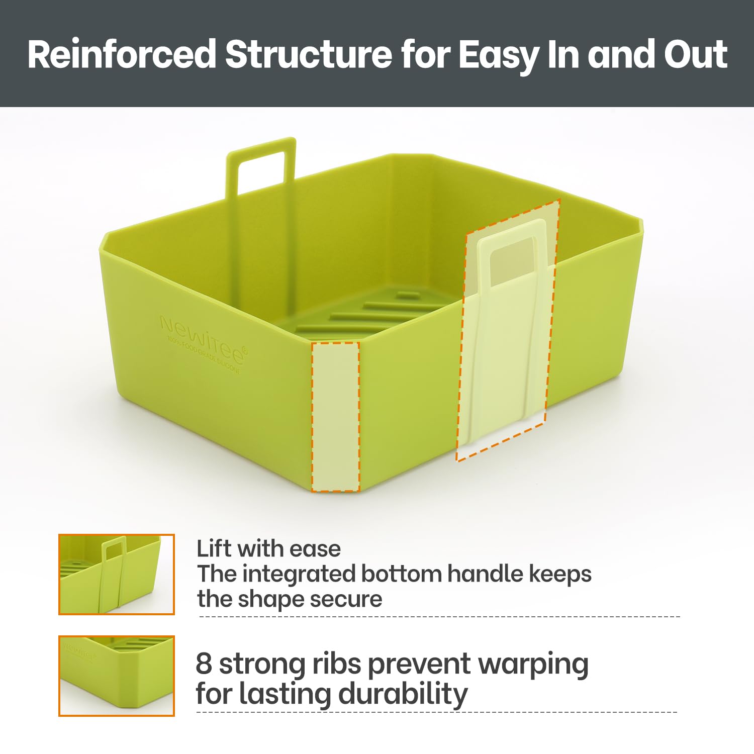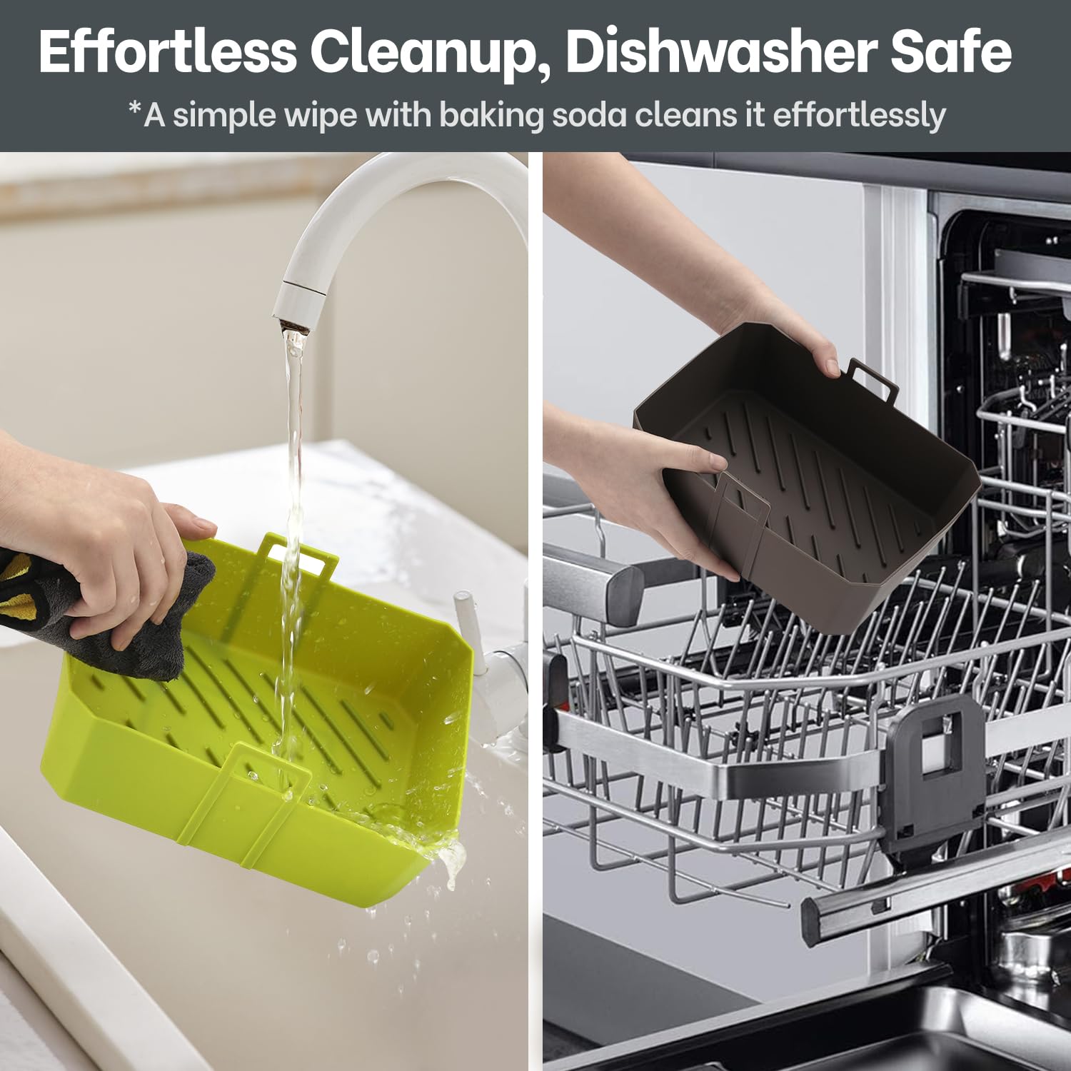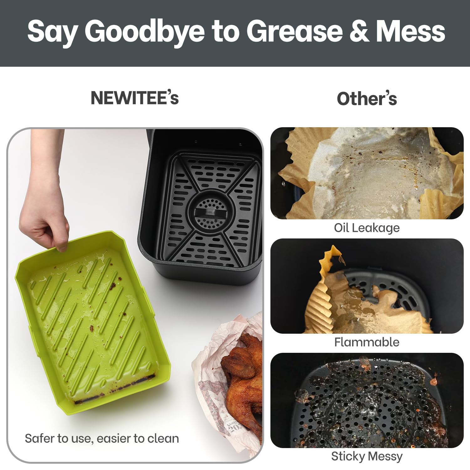 EFFORTLESS CLEANUP EVERY TIME: Say goodbye to messy parchment paper and hello to NEWITEE’s heavy-duty silicone liners. No more oily residue or stuck-on food, unlike flimsy parchment paper. With a non-stick surface, the food slides right off, saving you time and scrubbing. Cleaning it with a little hot soapy water is all it takes for spotless cleaning, or toss it in the dishwasher, and it will come out like brand new