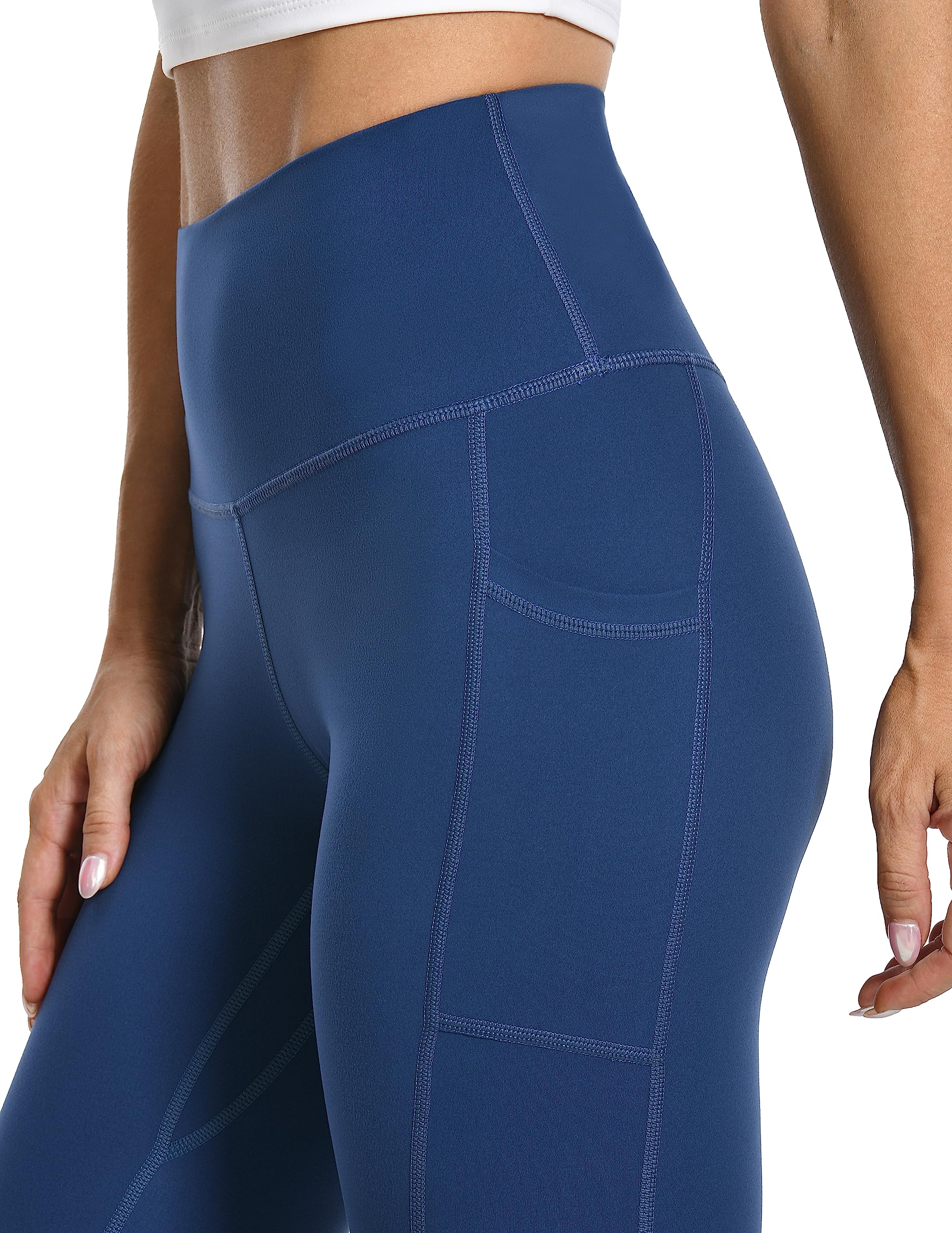 Seamless waistband design with adequate tummy control. Our leggings have just enough stretch to hold your belly without the sewn in elastic band