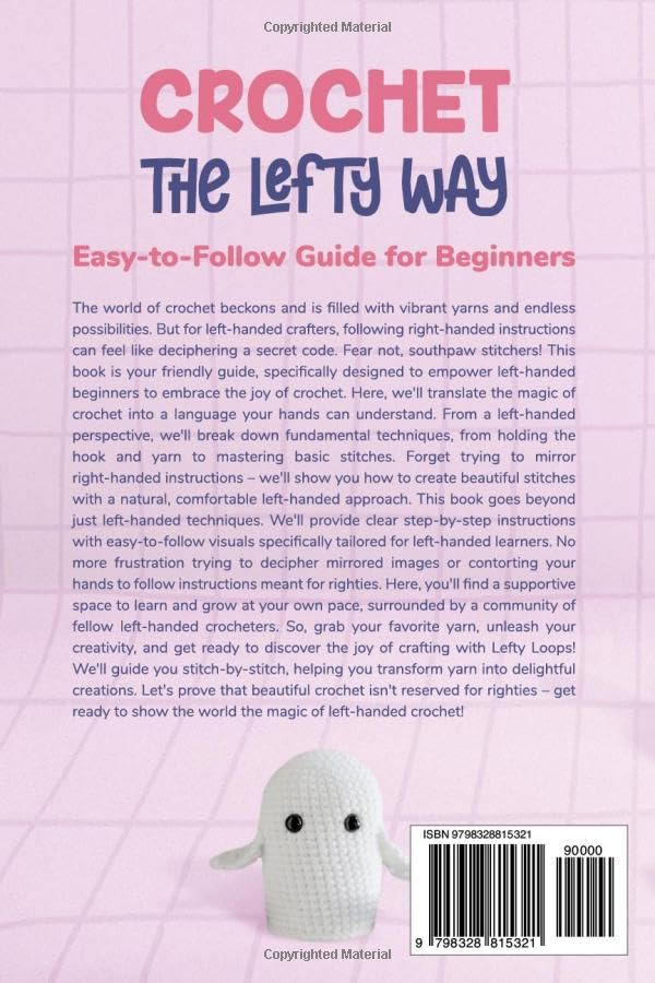 The world of crochet beckons is filled with vibrant yarns and endless possibilities. But for left-handed crafters, following right-handed instructions can feel like deciphering a secret code. Fear not, southpaw stitchers! This book is your friendly guide, specifically designed to empower left-handed beginners to embrace the joy of crochet. Here, we'll translate the magic of crochet into a language your hands can understand. We'll break down fundamental techniques, from holding the hook and yarn to mastering basic stitches, all from a left-handed perspective. Forget trying to mirror right-handed instructions – we'll show you how to create beautiful stitches with a natural, comfortable left-handed approach. This book goes beyond just left-handed techniques. We'll provide clear step-by-step instructions with easy-to-follow visuals specifically tailored for left-handed learners. No more frustration trying to decipher mirrored images or contorting your hands to follow instructions meant for righties. Here, you'll find a supportive space to learn and grow at your own pace, surrounded by a community of fellow left-handed crocheters. So, grab your favorite yarn, unleash your creativity, and get ready to discover the joy of crafting with Lefty Loops! We'll guide you stitch-by-stitch, helping you transform yarn into delightful creations. Let's prove that beautiful crochet isn't reserved for righties – get ready to show the world the magic of left-handed crochet!