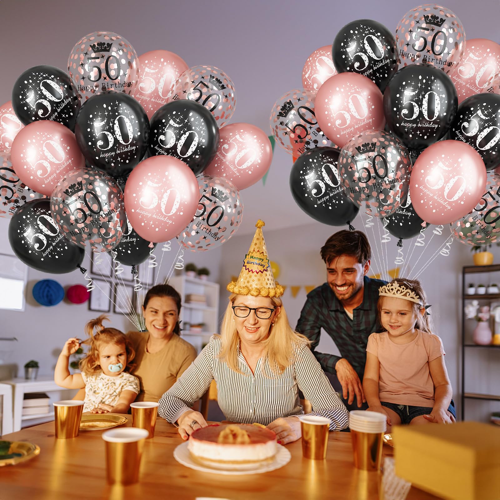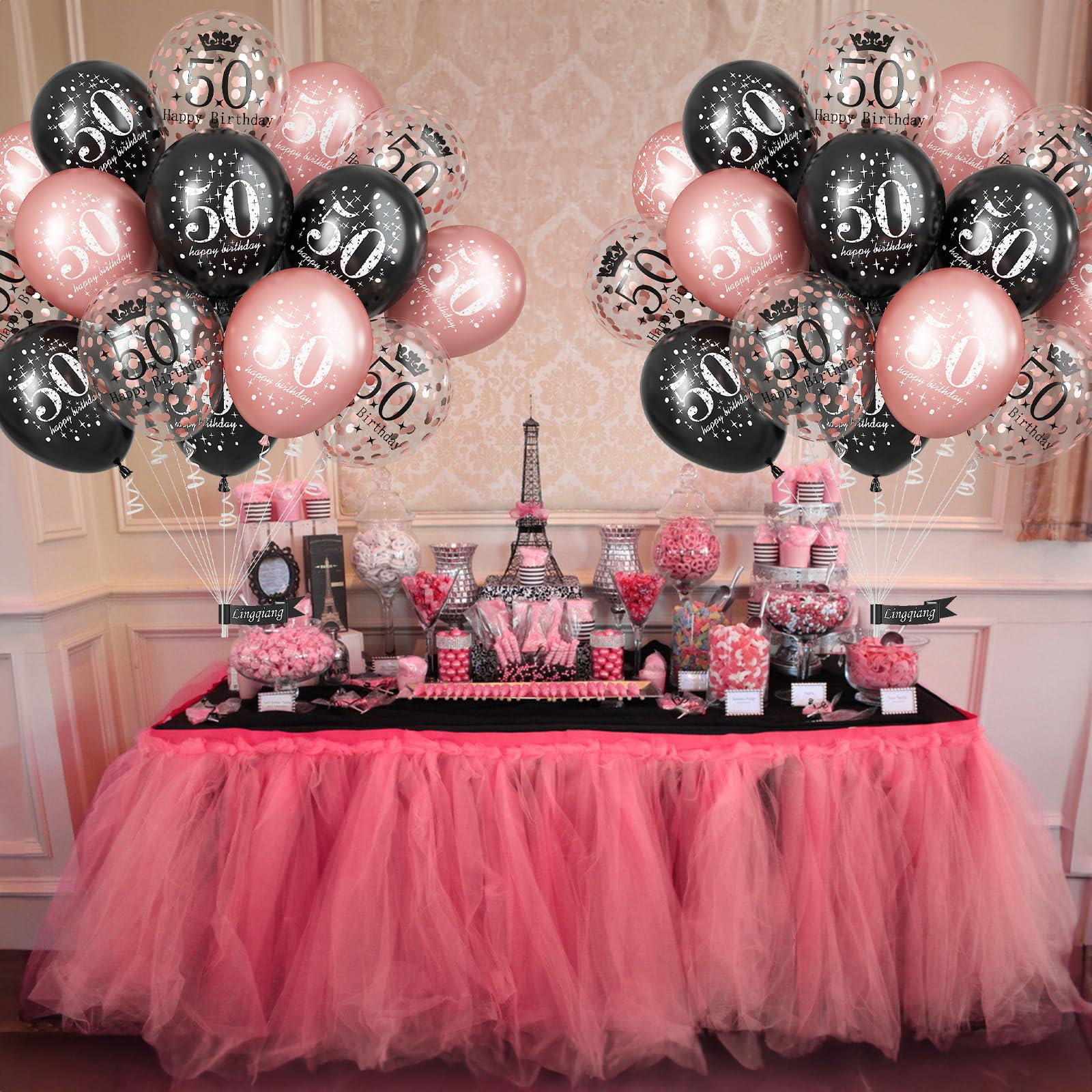🎂 Premium Material - The black rose gold 50th birthday party balloons is made of high quality natural latex, non-toxic and durable, thick and long-lasting, not easy to burst. They can be filled with air or helium, as a wonderful decorations for women 50th birthday party or family party.