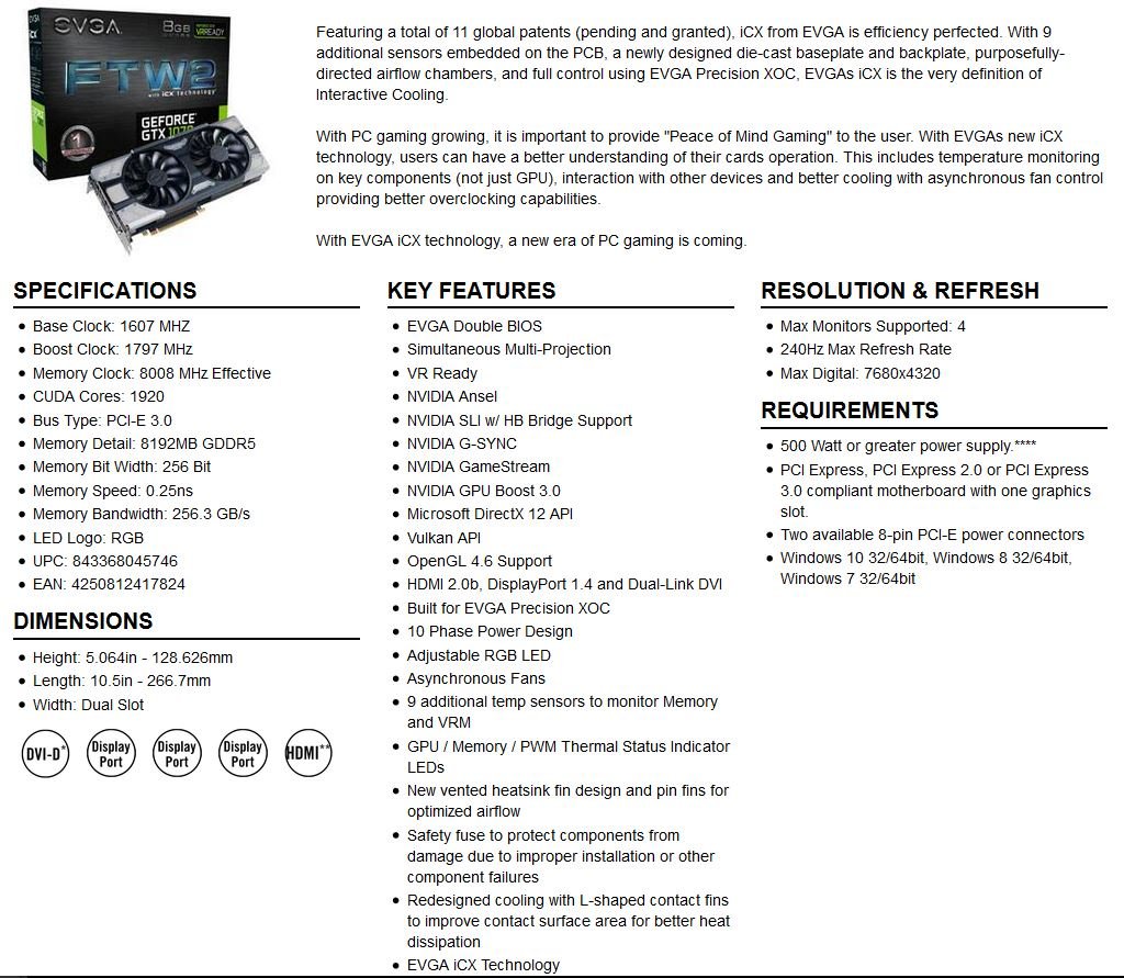 Featuring a total of 11 global patents (pending and granted), iCX from EVGA is efficiency perfected. With 9 additional sensors embedded on the PCB, a newly designed die cast baseplate and back plate, purposefully-directed airflow chambers, and full control using EVGA Precision XOC, EVGA's iCX is the very definition of Interactive Cooling. With PC gaming growing, it is important to provide "Peace of Mind Gaming" to the user. With EVGA's new iCX technology, users can have a better understanding of their cards operation. This includes temperature monitoring on key components (not just GPU), interaction with other devices and better cooling with asynchronous fan control providing better overclocking capabilities. With EVGA iCX technology, a new era of PC gaming is coming.