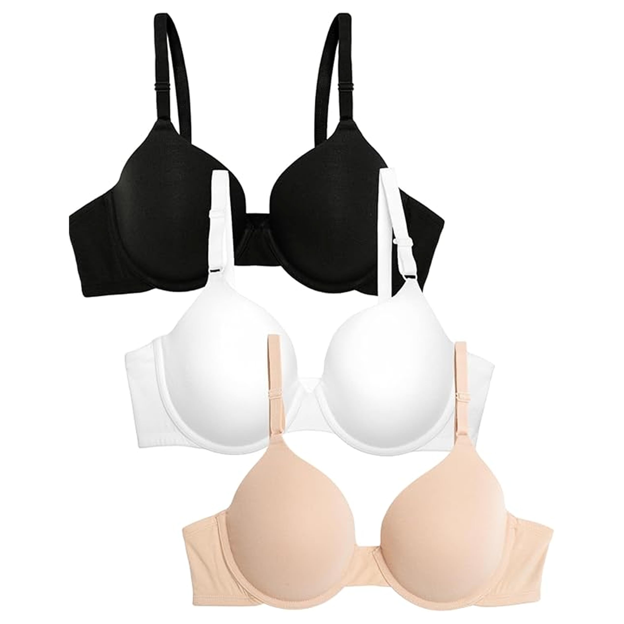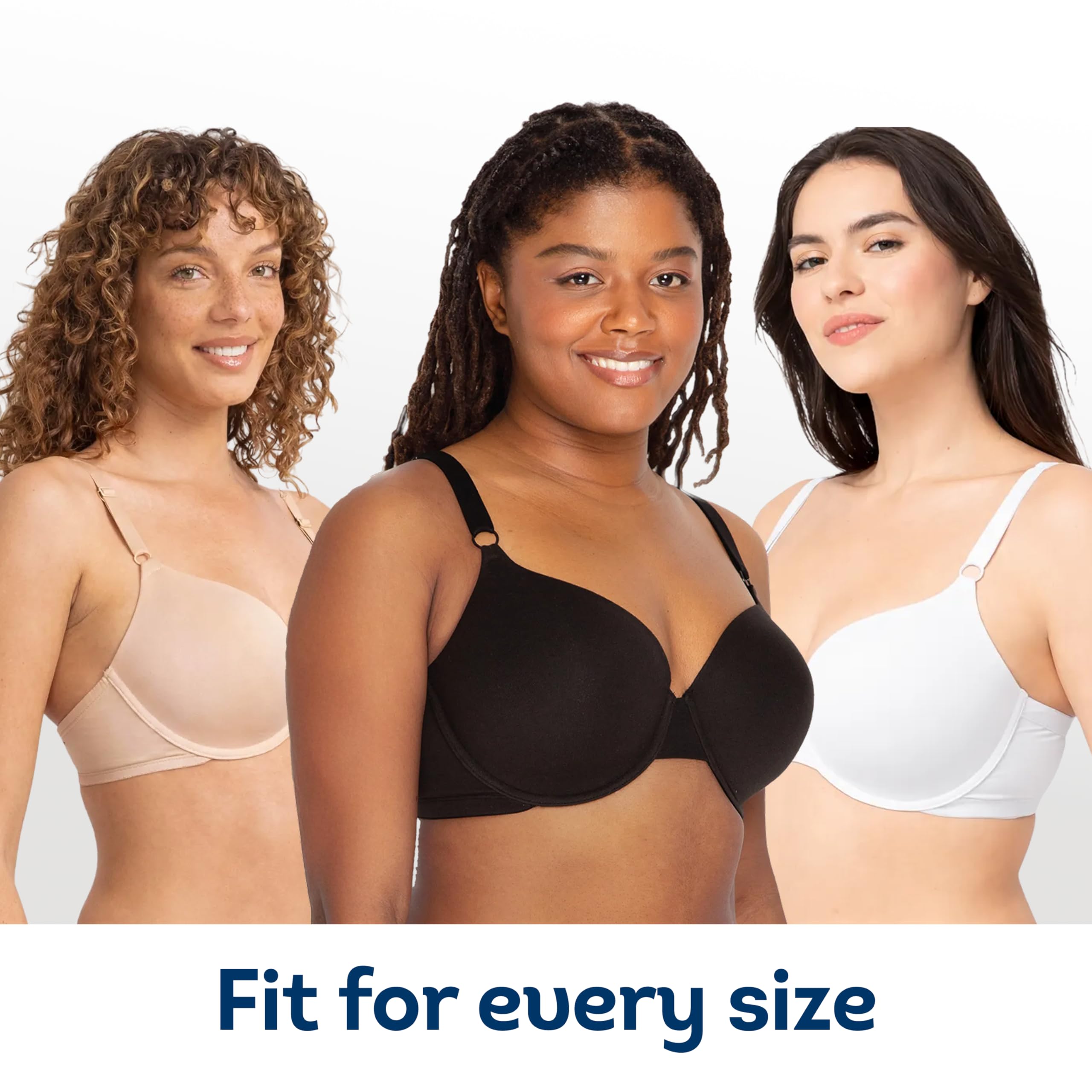 Description The Fruit of the Loom women's 3-pack T-shirt bra is your new favorite no show bra. The smooth, lightly lined cups are invisible under shirts, but one thing you won't be able to hide is your confidence. This full coverage bra is designed with thick adjustable straps and underwire for all-day comfort and support. Fruit of the Loom has been one of America's most trusted brands for over 160 years. We promise to deliver quality undergarments at an affordable price, always. Start everyday happy with Fruit of the Loom.