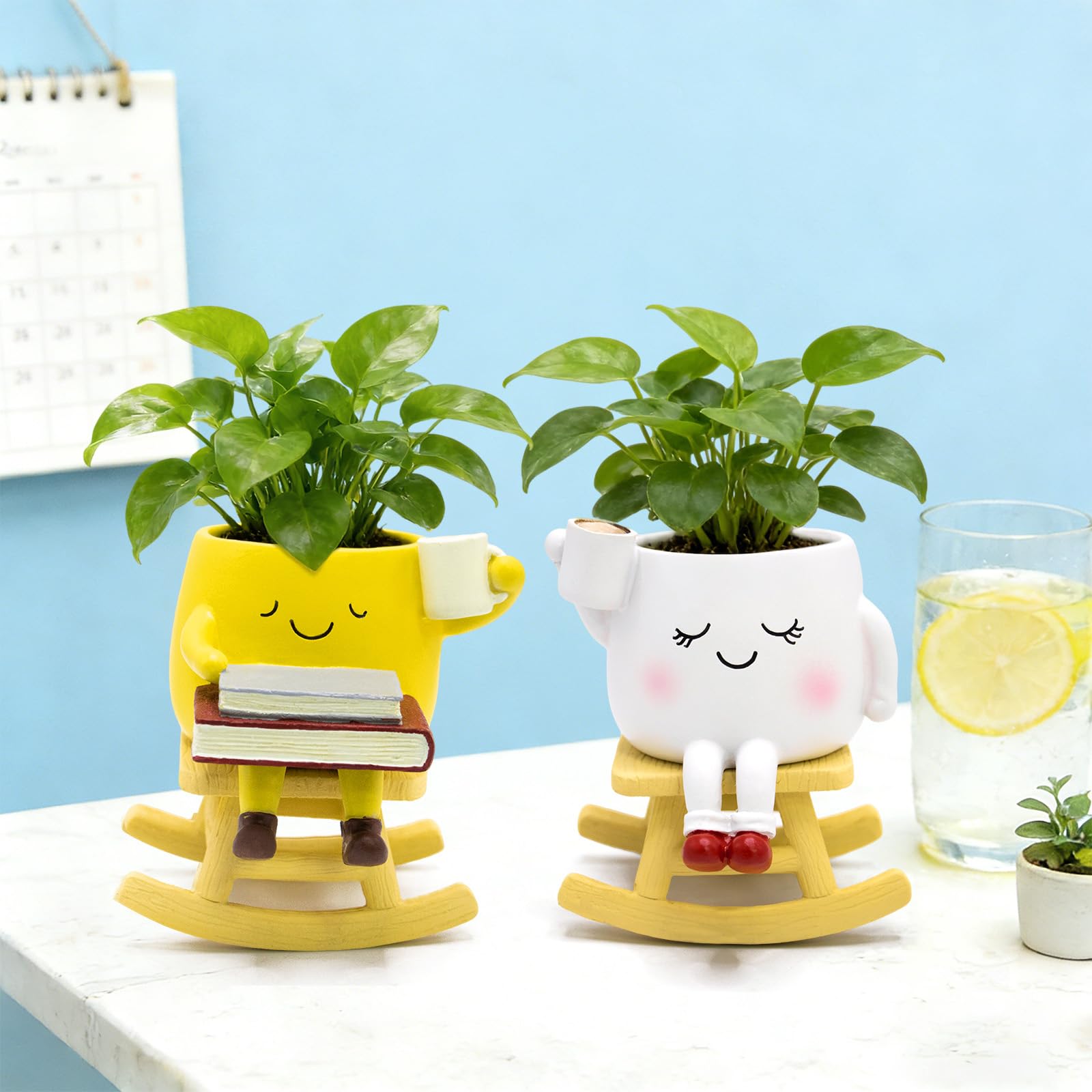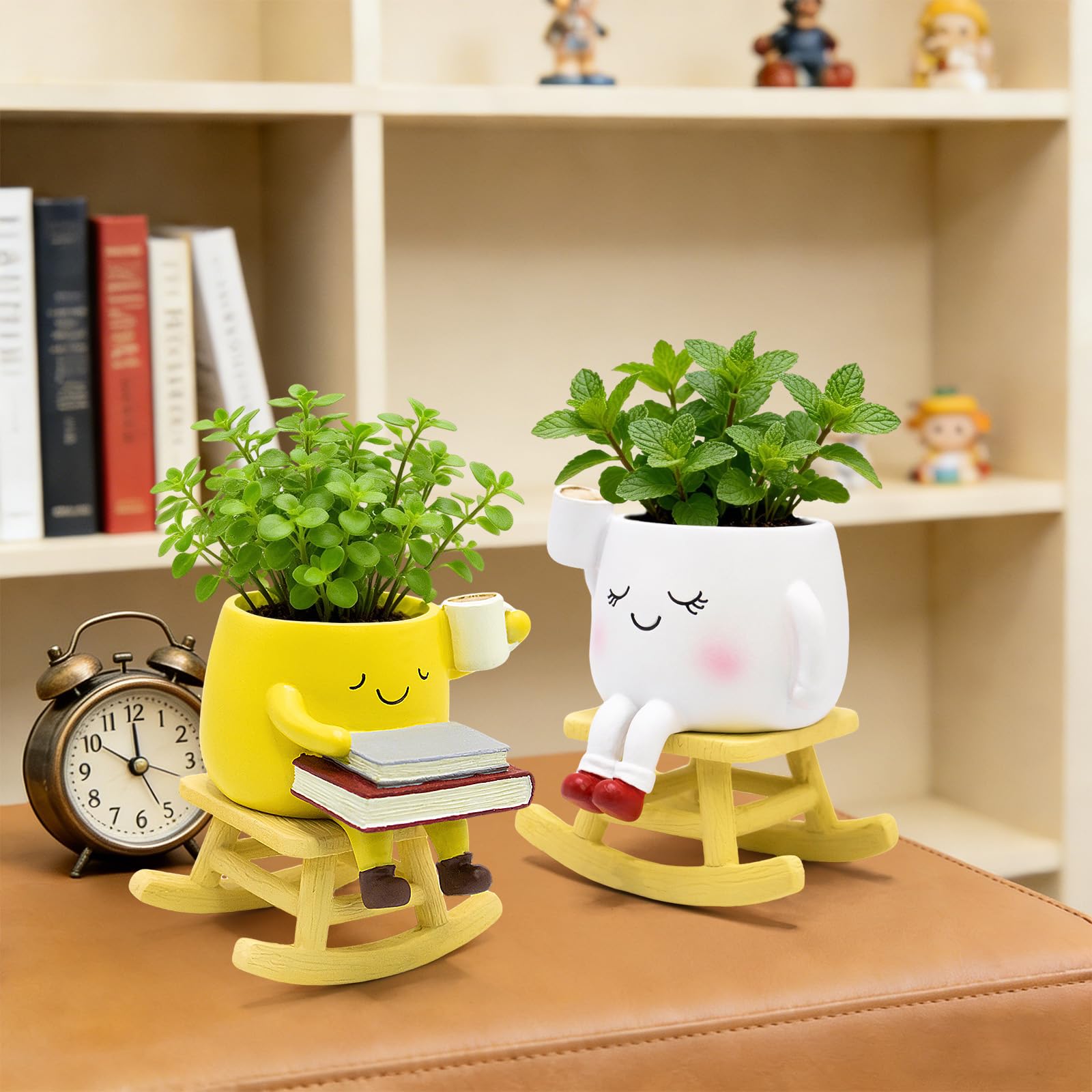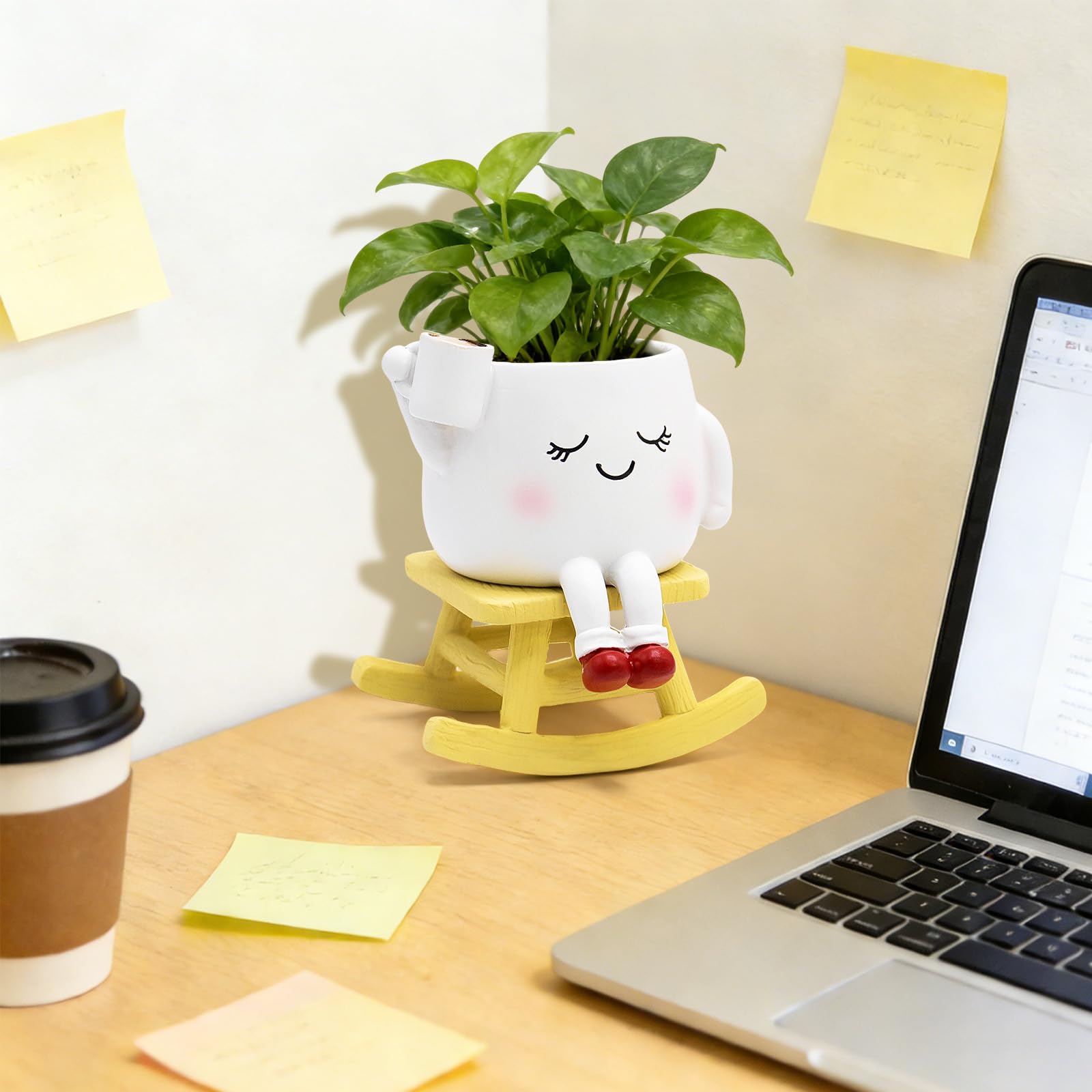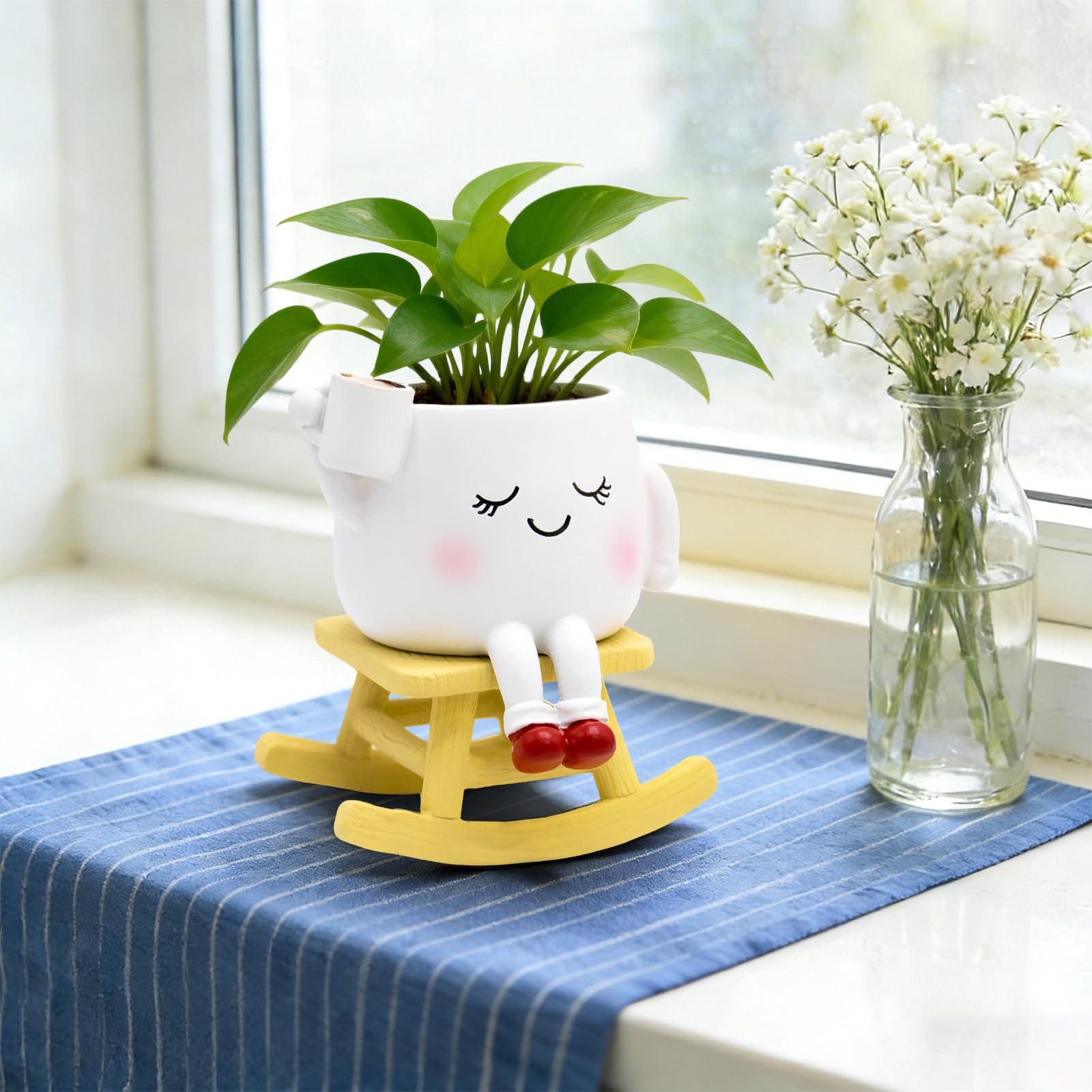 Unique Rocking Chair Coffee Planter – This cute planter features a smiling child sitting on a rocking chair, holding a cozy coffee cup with eyes peacefully closed. Its whimsical and heartwarming design adds a playful yet relaxing vibe to any space. Its expressive design makes it a standout decorative piece
