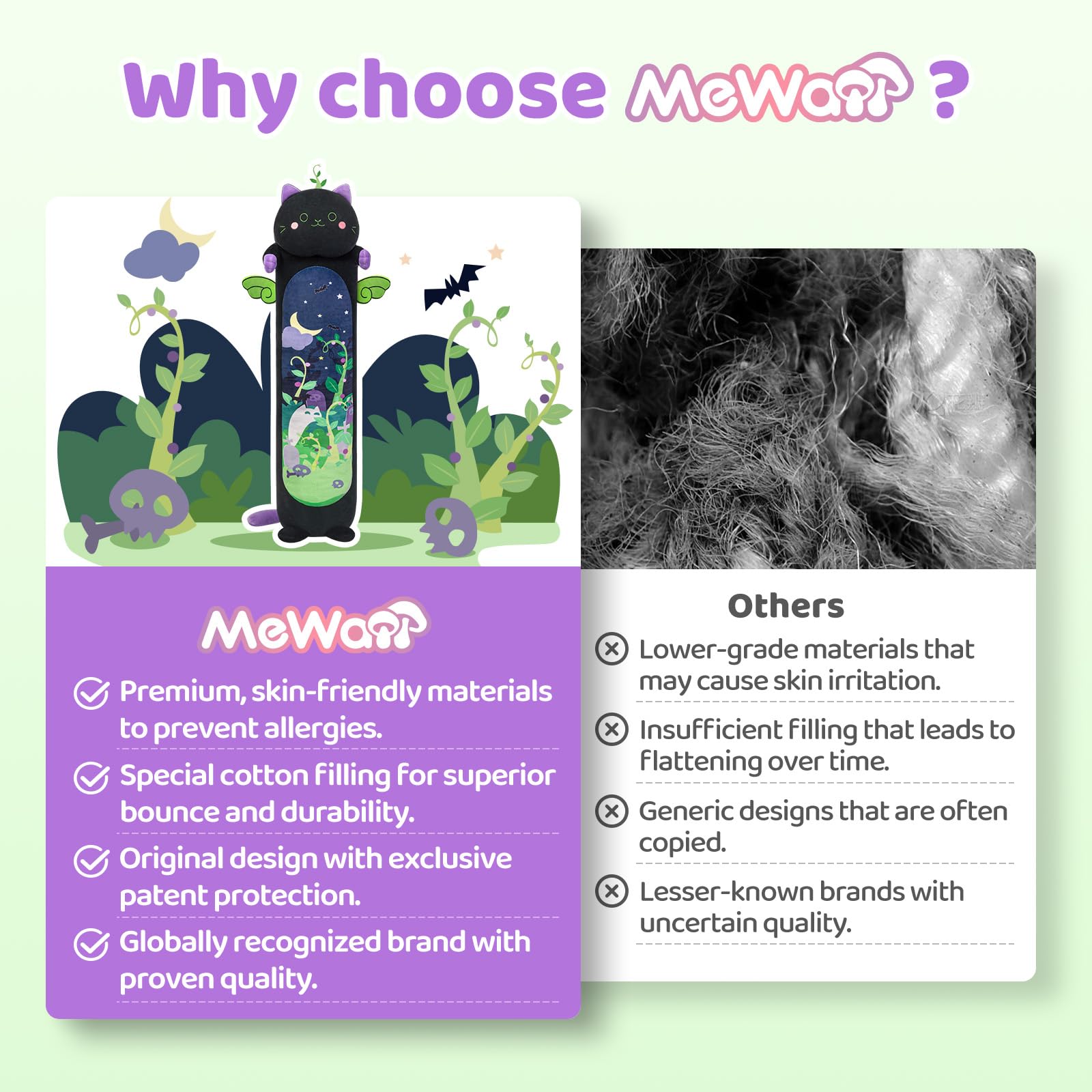 Super Soft Black Cat Plushies: Our kawaii sleeping plush pillow toy is elaborately made of spandex super soft fabric and filled with down cotton. When you hold it in your arms, you will feel comfortable and elastic, with a smooth feel and delicate texture.
