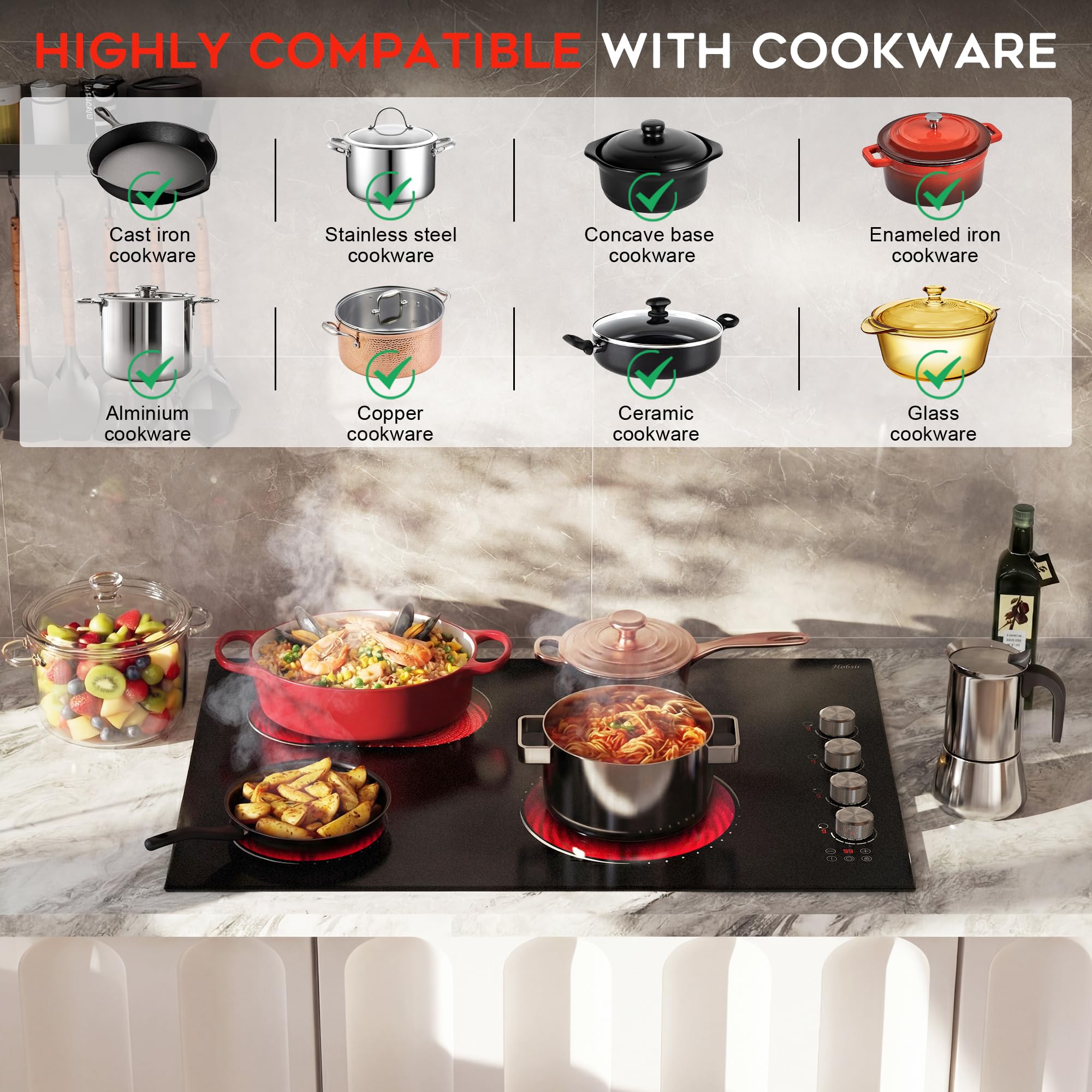 【Hobsir Electric Cooktop 30 Inch: Modern & Practical Kitchen Essential】This electric cooktop combines functionality with a sleek design, fitting seamlessly into cocinas electricas modernas. As a reliable stove top and 30 electric cooktop, it delivers consistent heat distribution and easy cleaning, making it a great choice for everyday cooking and special occasions alike.