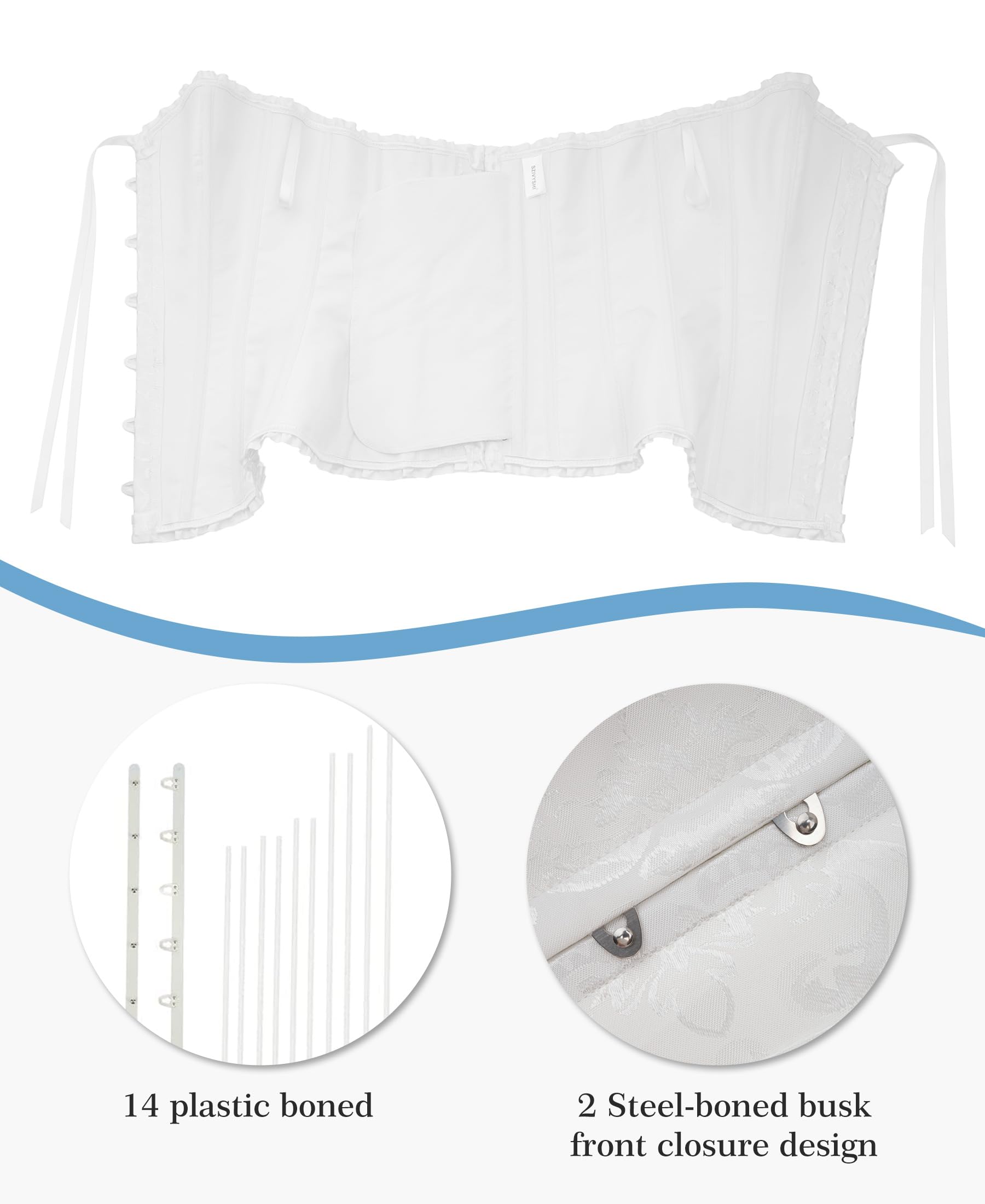 PREMIUM CRAFTSMANSHIP: Our women's bustiers & corsets are crafted with an unwavering commitment to quality. The outer shell of corset shapewear is a blend of luxurious Polyester, complemented by a pure Polyester lining that promises longevity and resilience. The stainless steel busk closure stands as a bastion of reliability, ensuring your corset black crop top remains securely fashioned, no matter the occasion.
