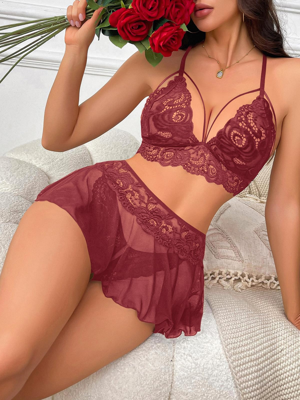 🎁Style: This v-neck 3pc lingerie set paired with a soft lace bra can enhance your femininity and outline your sexy chest lines, making you more charming.