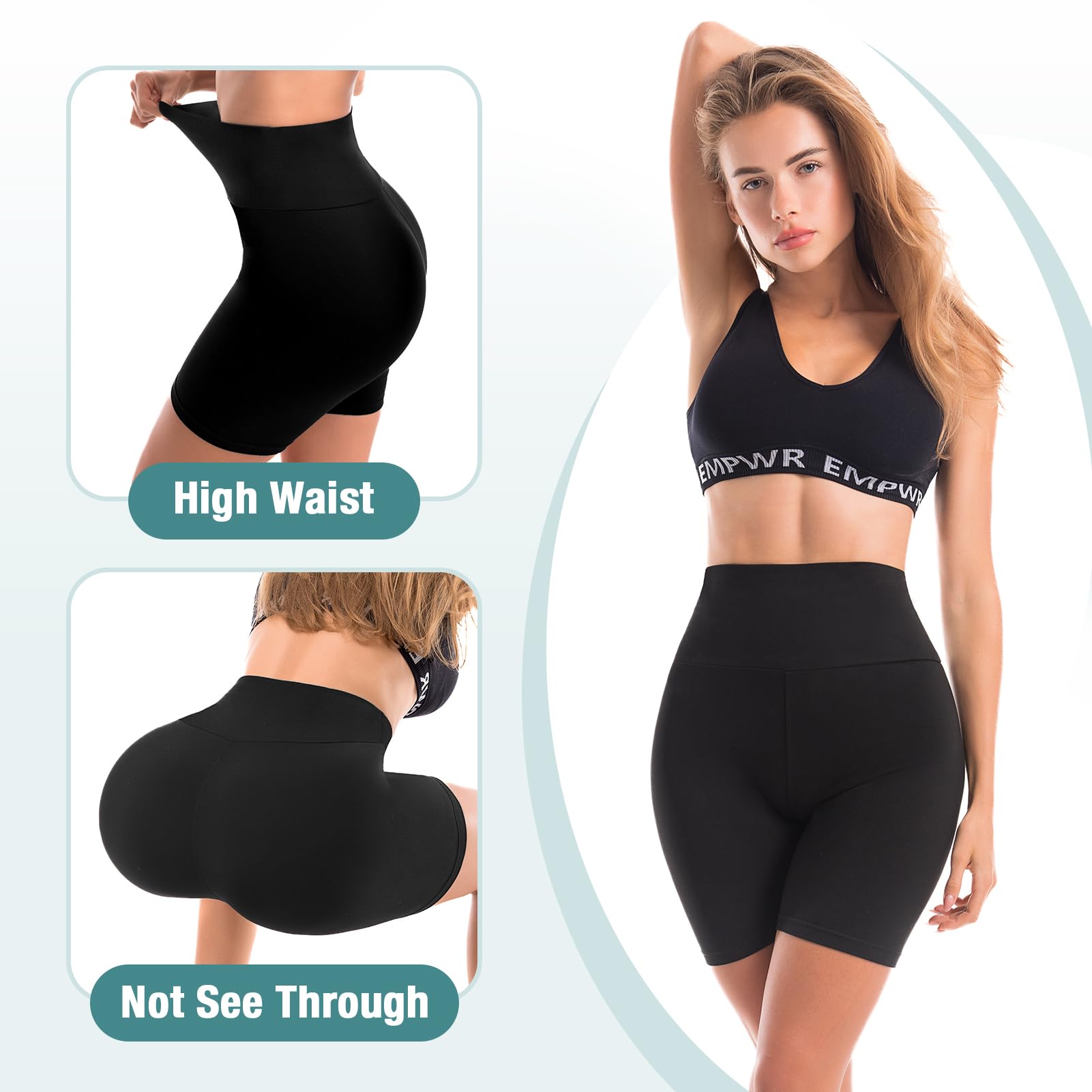 MATERIAL: Athletic shorts for women are made of smooth and buttery SPANDEX material; Moisture Wicking, Breathable, non-see through, four-way stretch and durable; Comfortable fabric provide you with a moderate and soft feeling throughout your ride