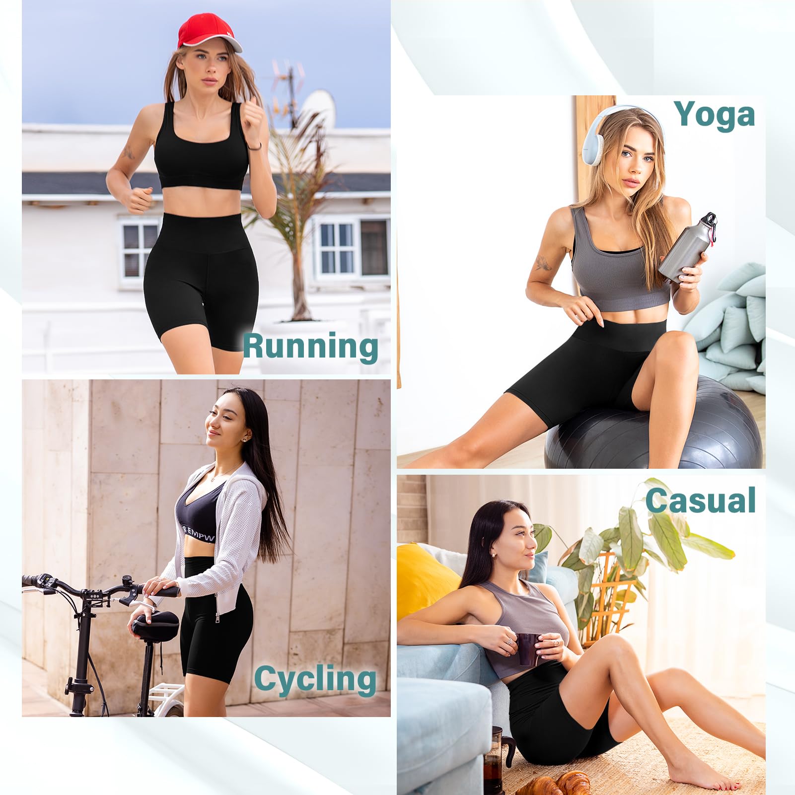 HIGH WAISTED AND TUMMY CONTROL: Fashion designed with high rise coverage, the running shorts for women can cover your abdomen and provide you with warmth; The yoga shorts for women can also give you a fit appearance