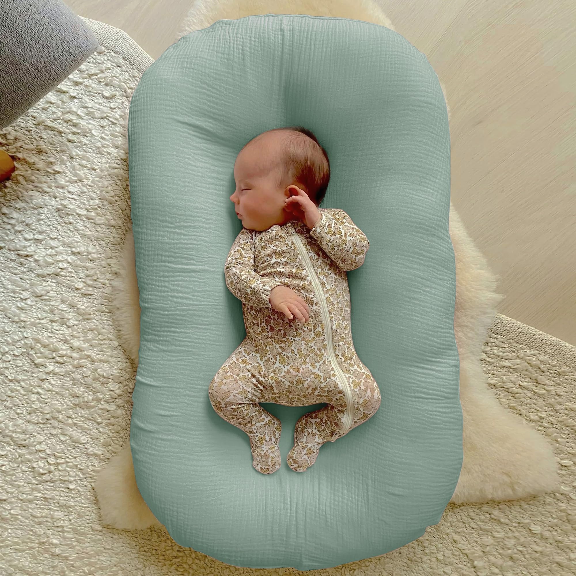 Soft and Breathable: Our baby lounger cover is made of 100% muslin cotton. Experience the soft and comfortable touch of our fabric, perfect for your baby's delicate skin. The lightweight and breathable material will ensure your little one stays cool and cozy