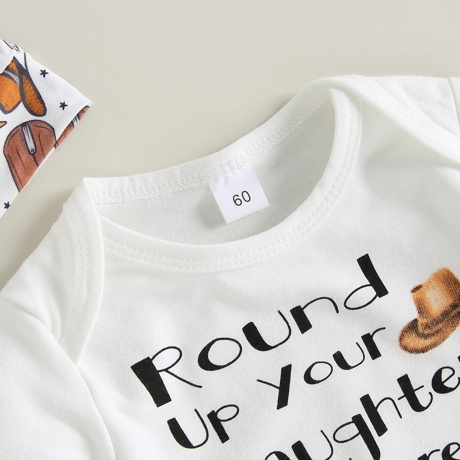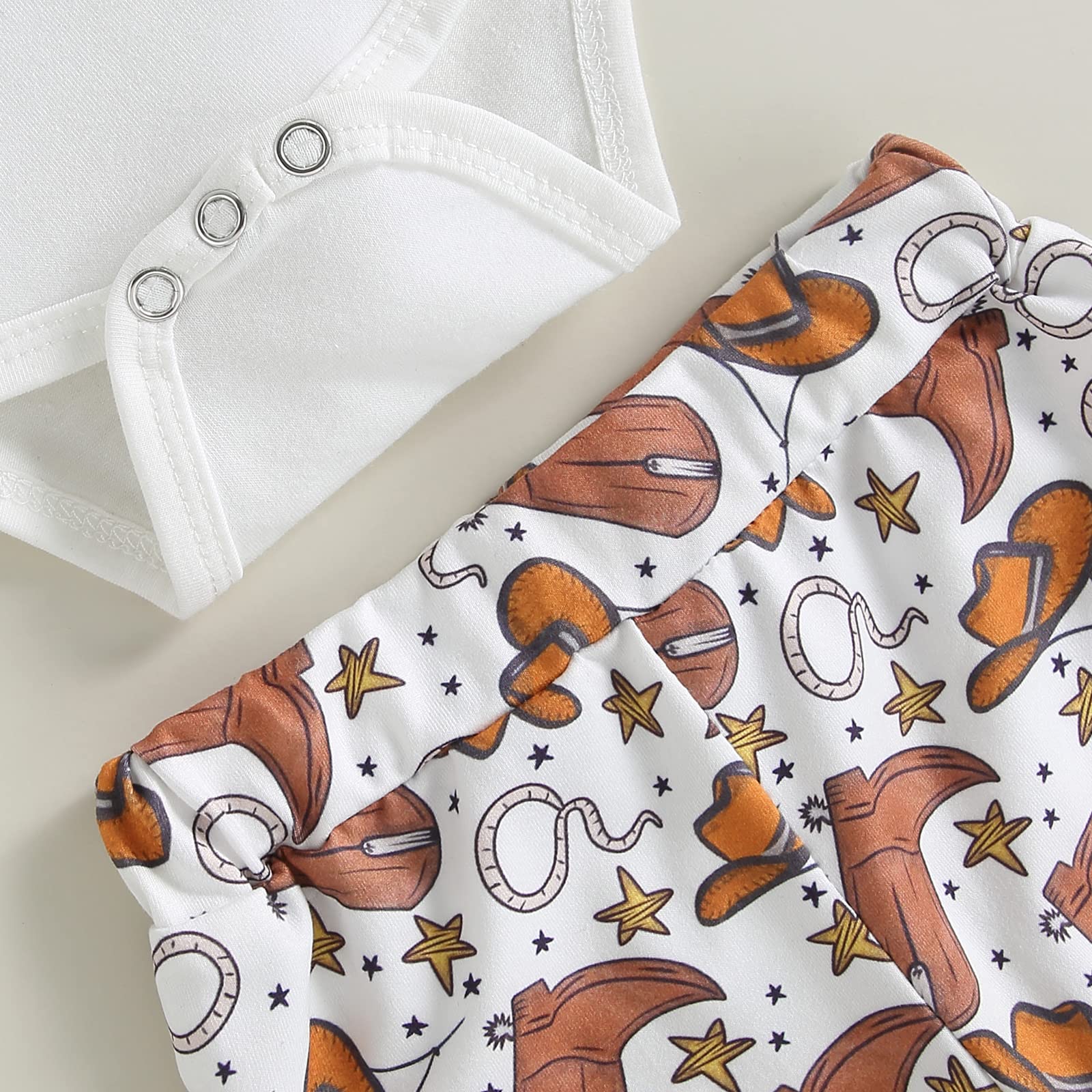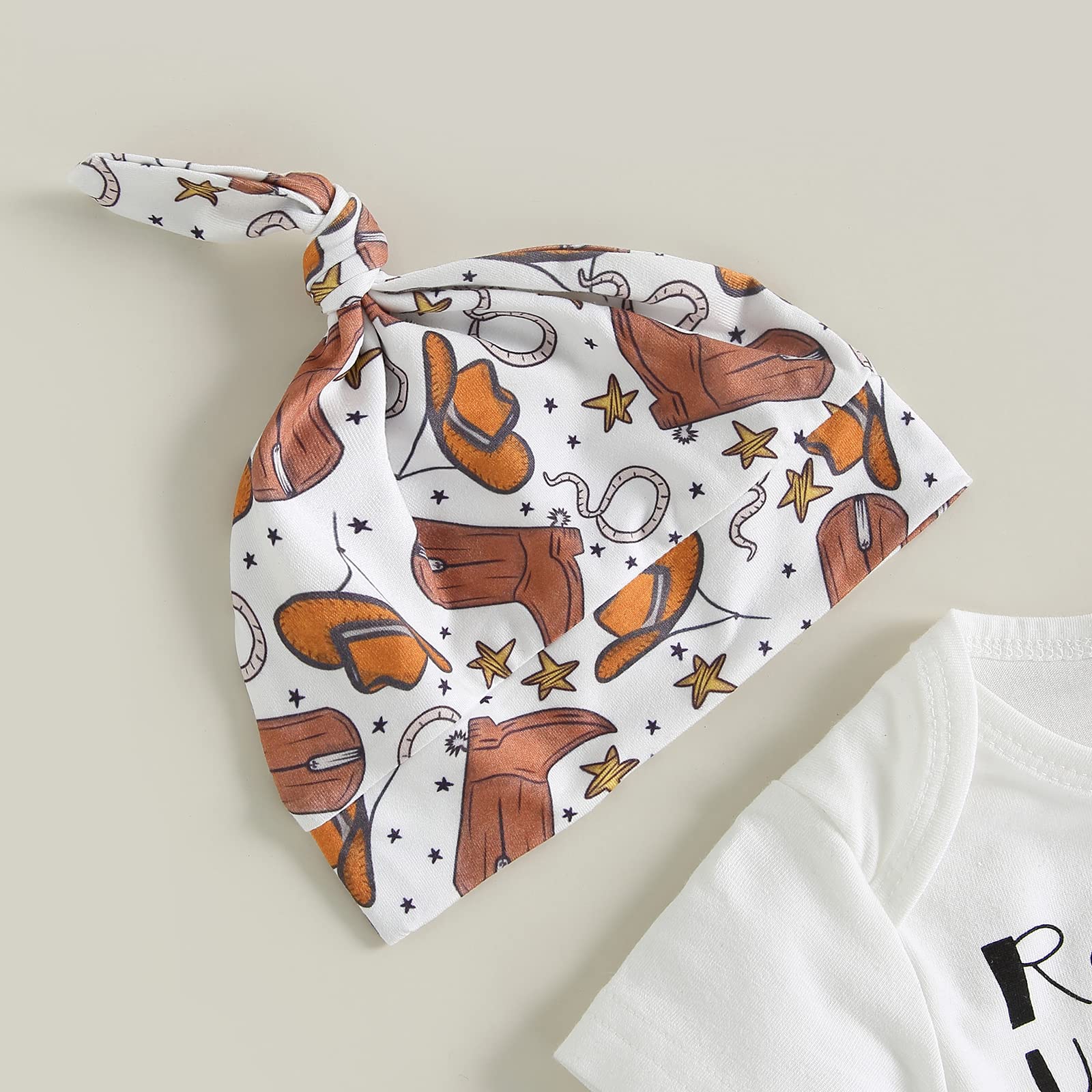 Description Western Cowboy Letter Printed Bodysuit Romper + Pants +Hats Outfits