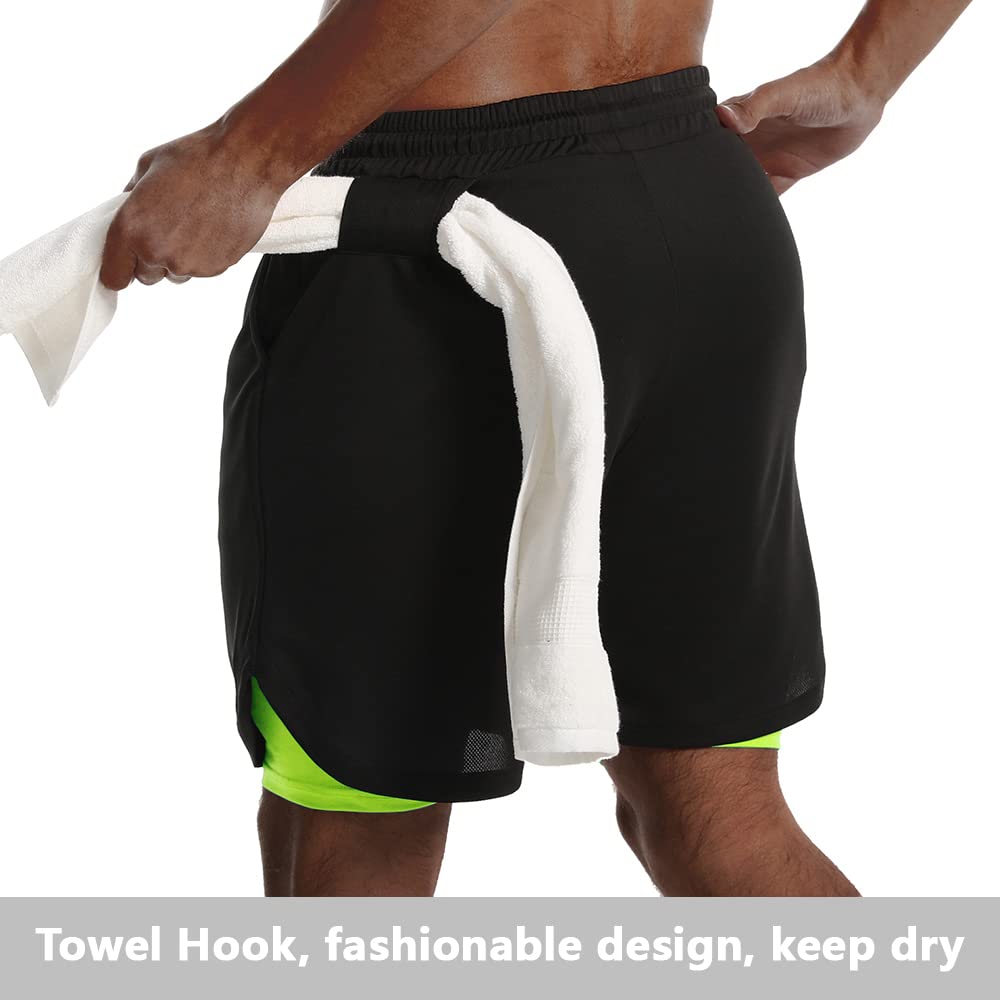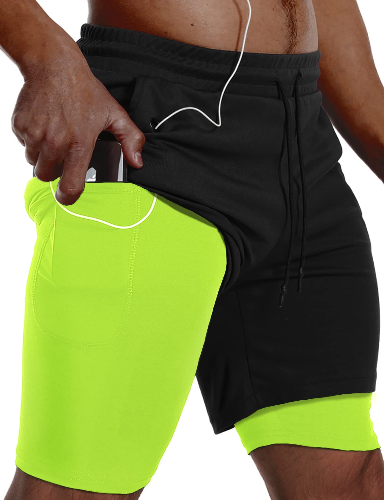MATERIAL:Our 2 in 1 gym shorts for men are made of high quality elastic high grade fabrics,comfortable and soft,perfect fit,and have excellent anti pilling ability,quick drying,breathable,high moisture absorption,and bring you a light and comfortable feeling during fitness.