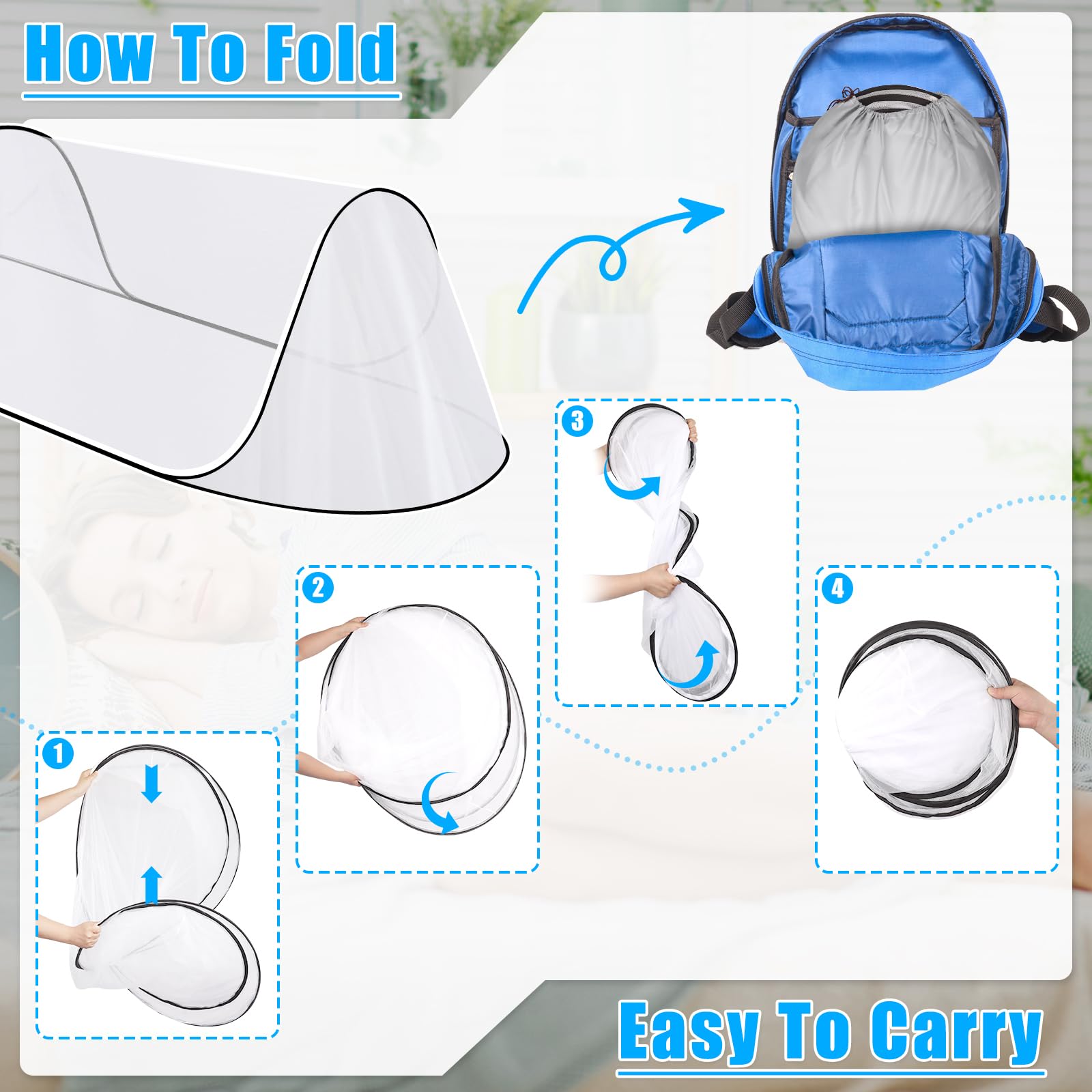 【Removable Mosquito Tent】Compared to large-sized traditional nets, which can only be fixed to the bed, our removable nets are more convenient and perfect for camping, home, and travel. Protect you and your family from mosquitoes anytime, anywhere