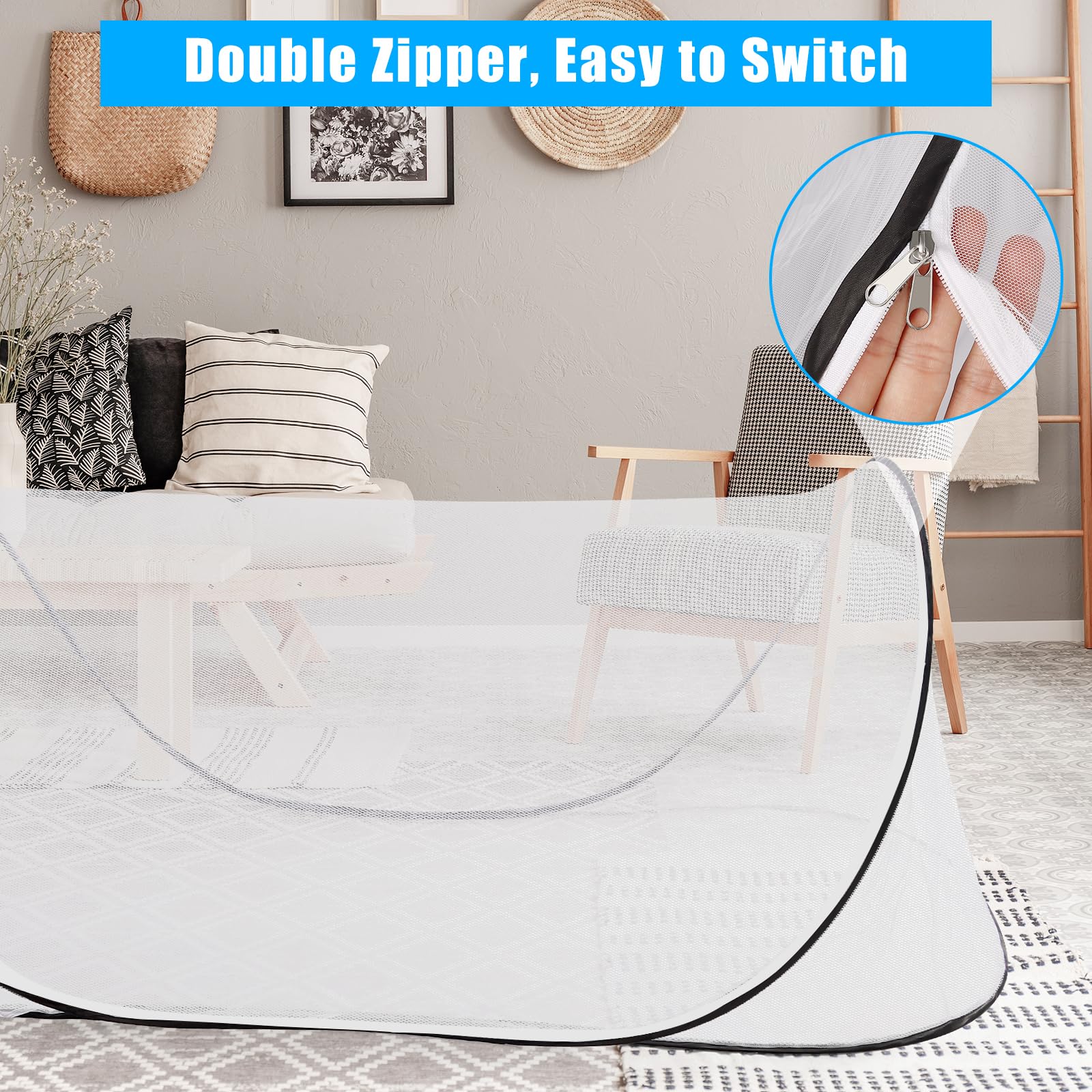 【Double Zipper Design】Easy to open and close, leaving no gaps for mosquitoes to enter, making entry and exit more convenient
