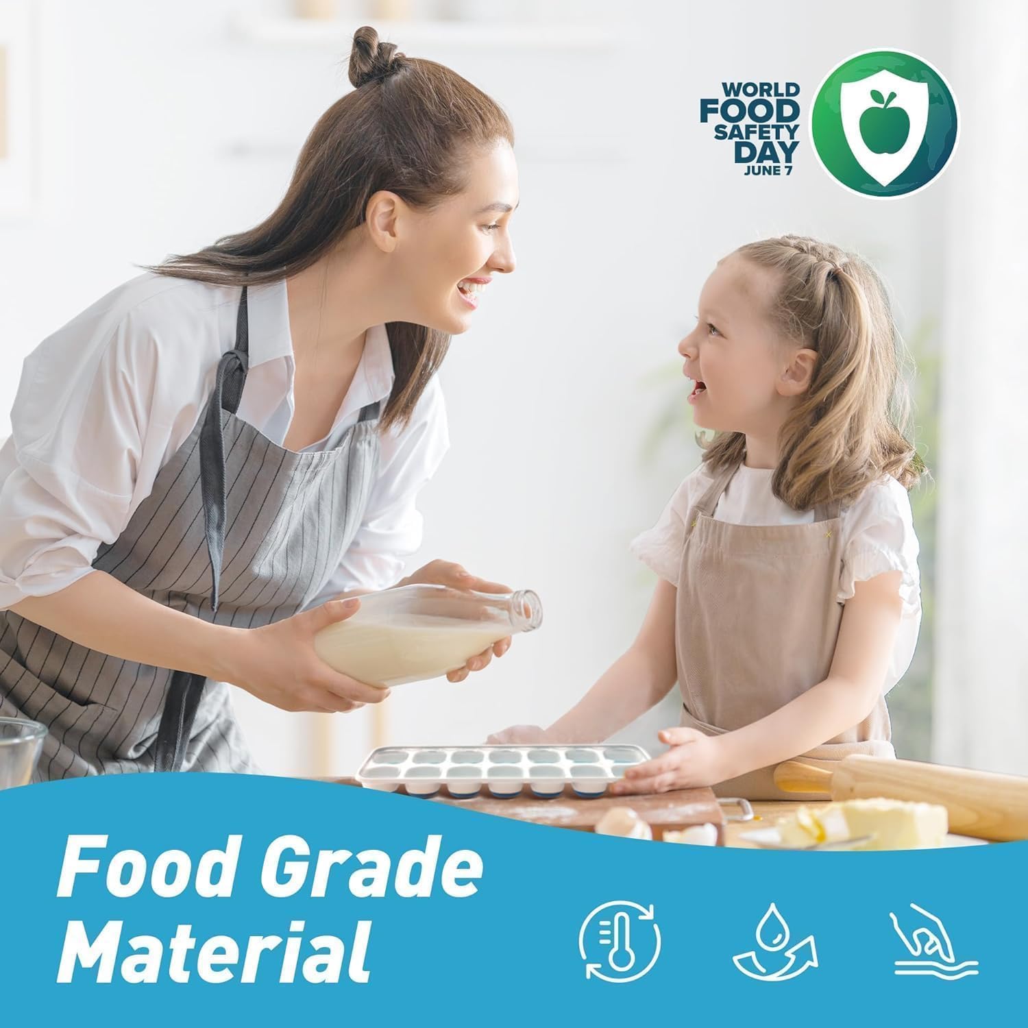 Sturdy and Durable: Made of silicone and PP material, our ice cube trays for freezer are sturdy enough to withstand long-term low-temperature storage without breaking. No longer worry about breaking easily. Besides, our silicone bottom is soft enough to release the ice easily, so twisting is no longer needed, which makes the ice trays even more durable